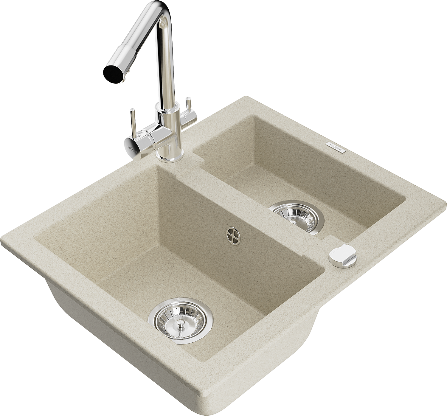 Mexen Carlos granite sink 1.5-bowl with Duero kitchen tap, beige - 6518-69-671600-00