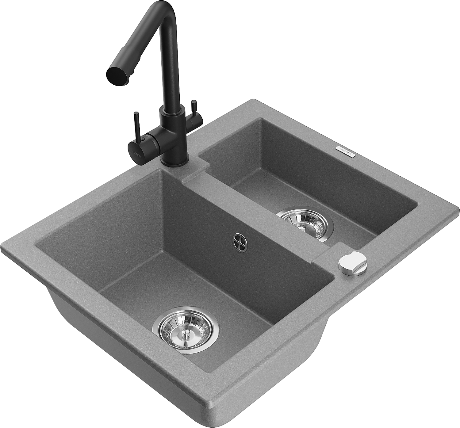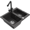 Mexen Carlos granite sink 1.5-bowl with Duero kitchen tap, grey - 6518-71-671600-70