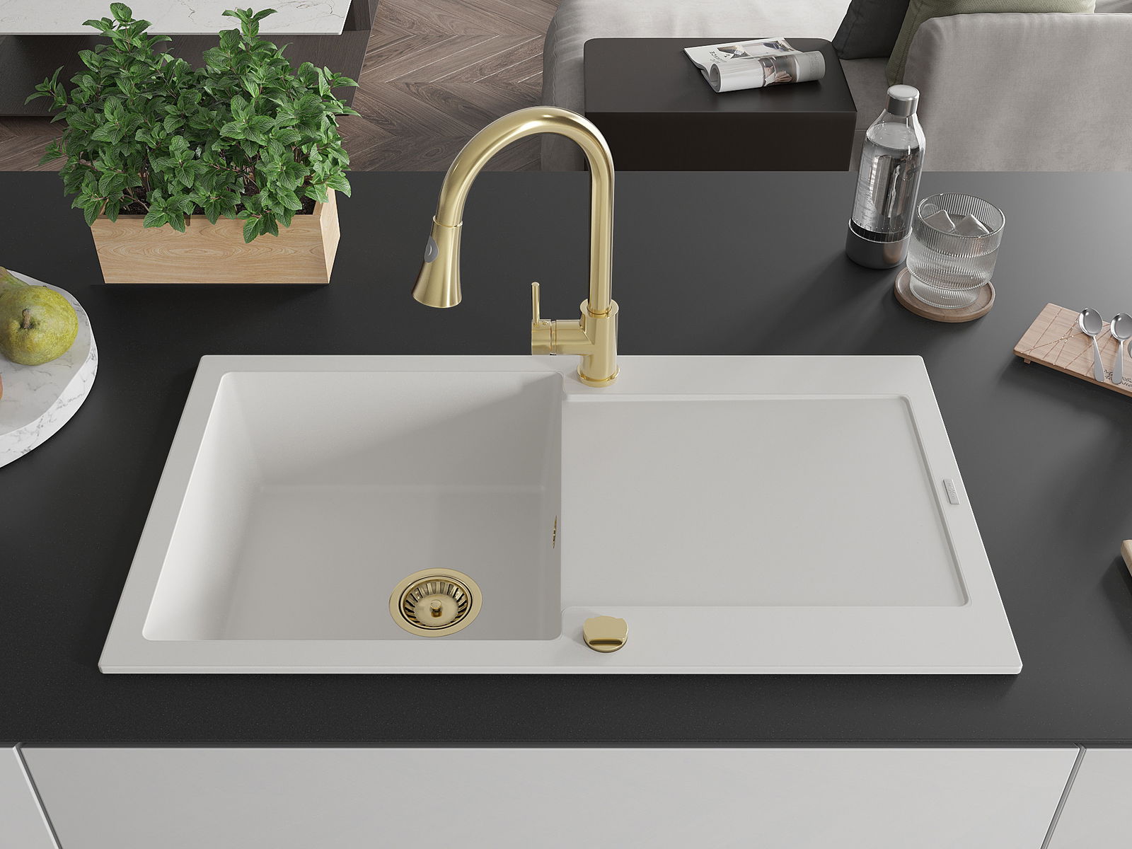 The surface of the sink is resistant to stains and discoloration, thanks to which it is easy to clean and retains its color for a long time. Aesthetic and practically complementing every kitchen.