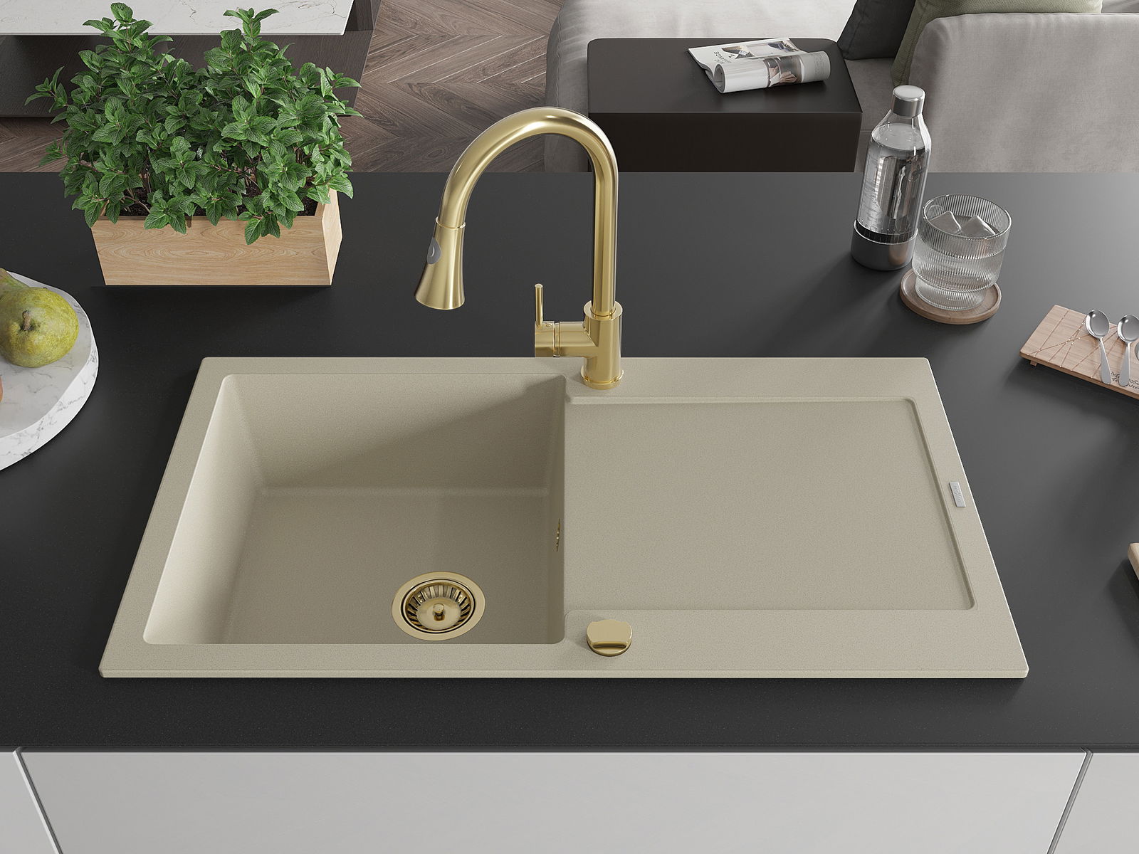 The surface of the sink is resistant to stains and discoloration, thanks to which it is easy to clean and retains its color for a long time. Aesthetic and practically complementing every kitchen.