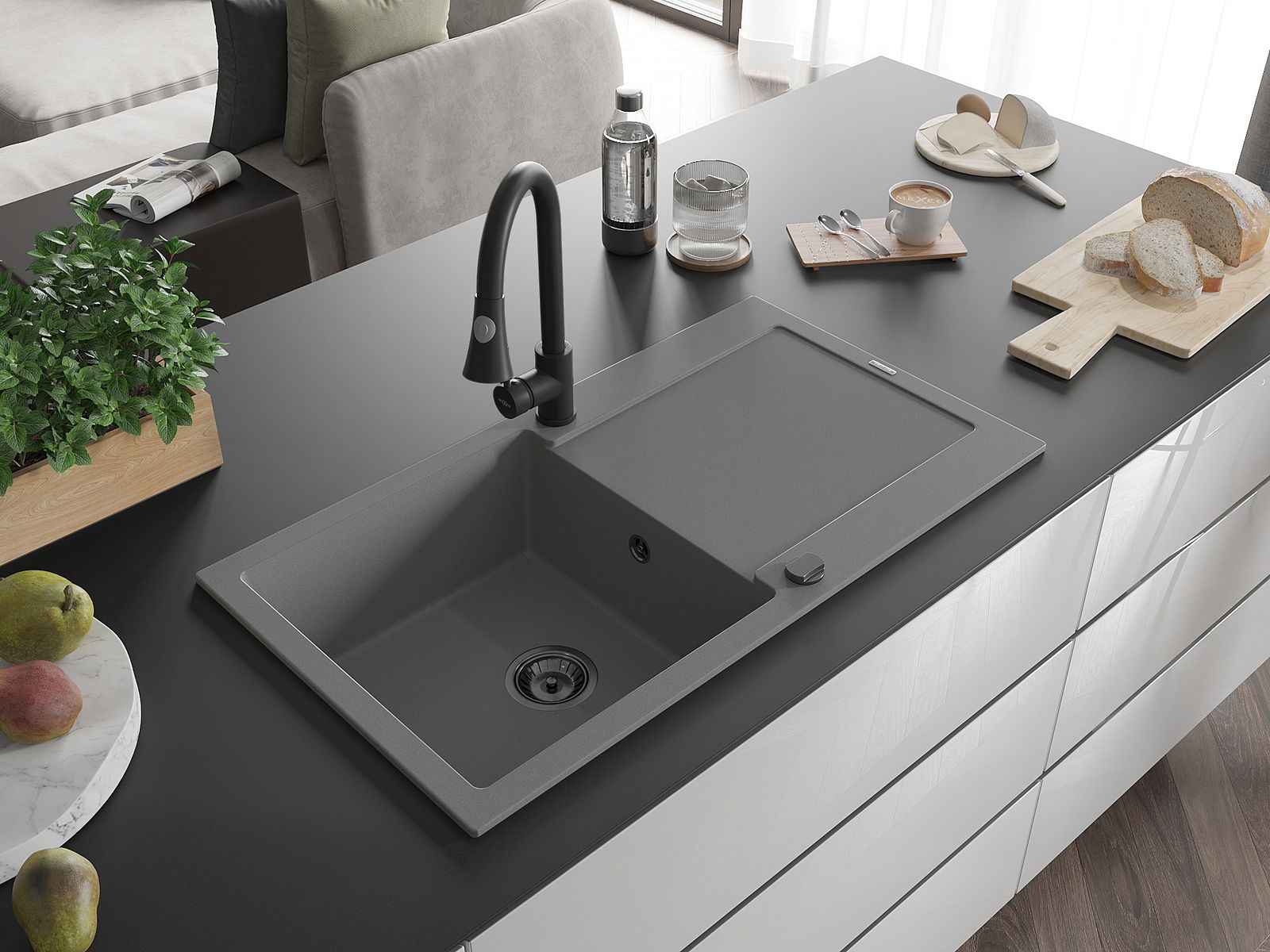 The sink is made of high quality granite. It is an elegant and, above all, practical complement to every kitchen, regardless of its style. High quality and granite durability ensure many years of use.