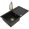 Mexen Leo 1-Bowl Granite Sink with Drainer and Elia Kitchen Tap, Black/Silver Metallic - 6501-73-670101-50