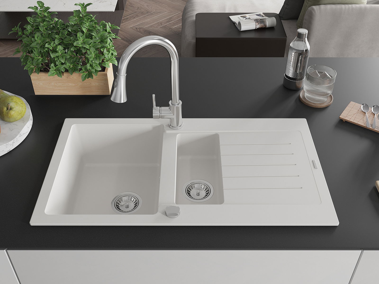 The surface of the sink is resistant to stains and discoloration, thanks to which it is easy to clean and retains its color for a long time. Aesthetic and practically complementing every kitchen.