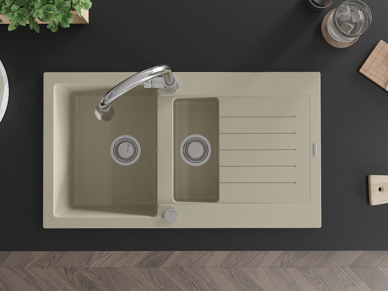 The sink is made of high quality granite. It is an elegant and, above all, practical complement to every kitchen, regardless of its style. High quality and granite durability ensure many years of use.