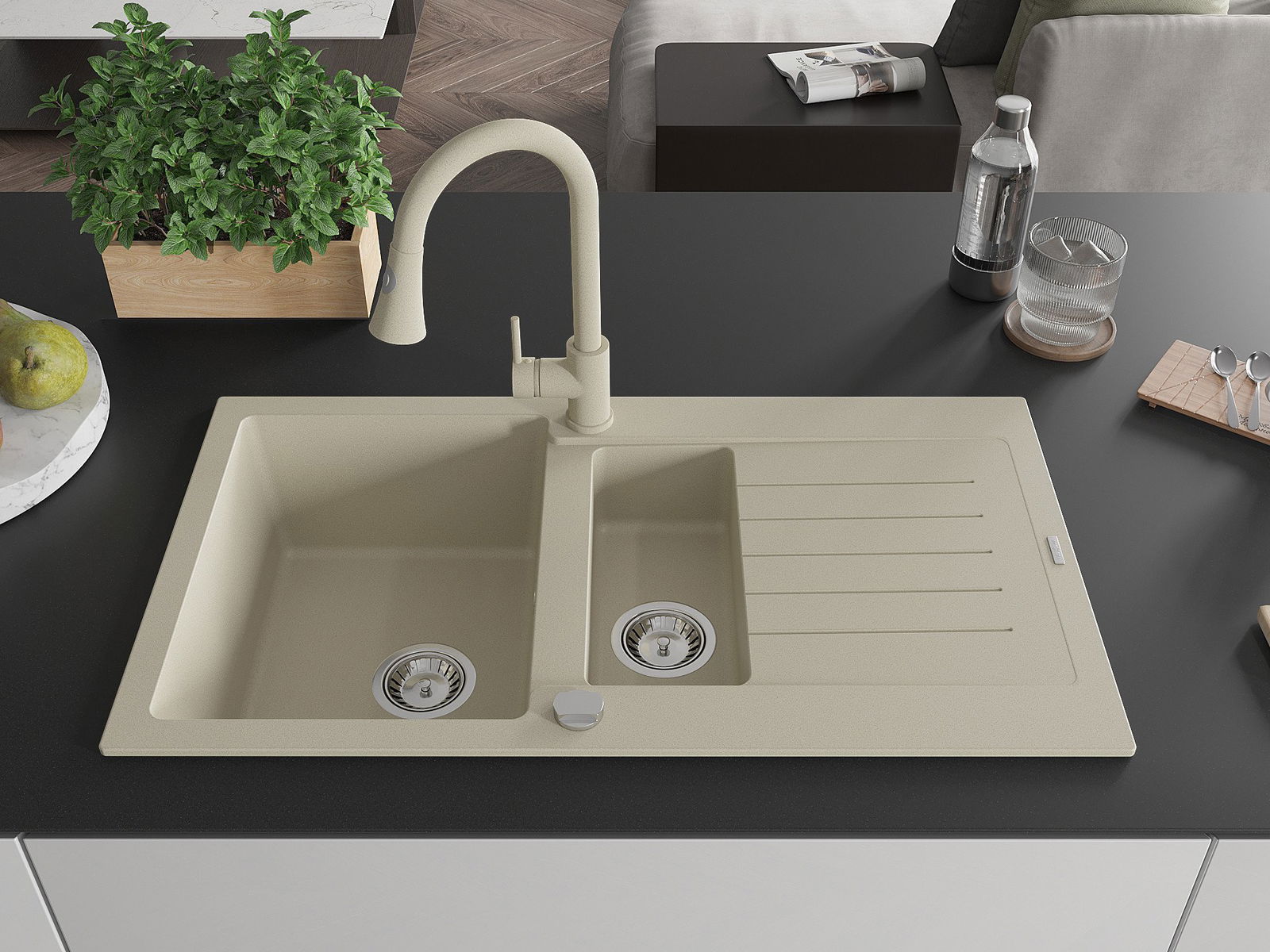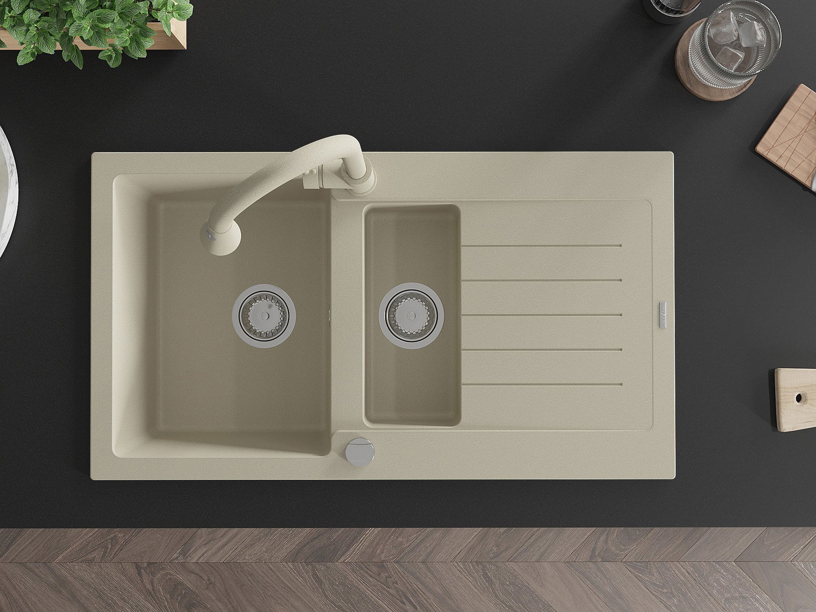 The sink is made of high quality granite. It is an elegant and, above all, practical complement to every kitchen, regardless of its style. High quality and granite durability ensure many years of use.