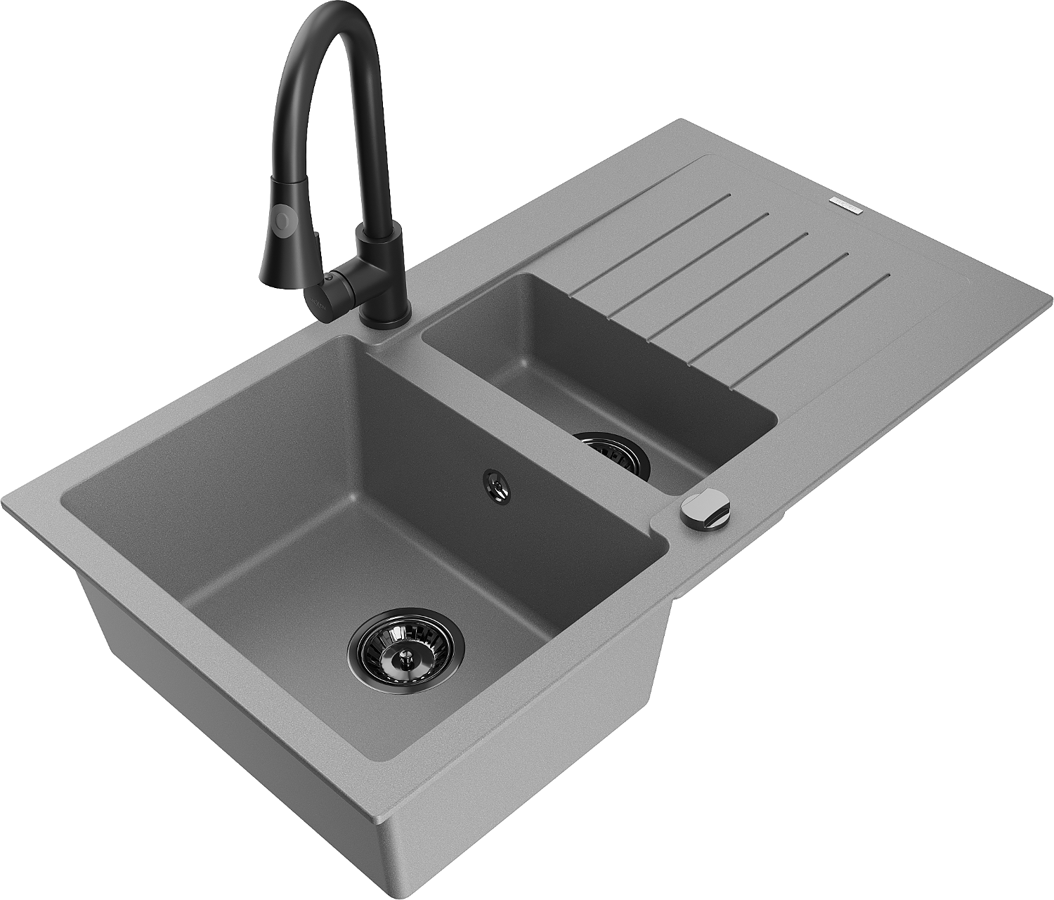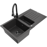 Mexen Matias granite sink 1.5-bowl with drainer and Elia kitchen tap, grey - 6502-71-670101-70-B