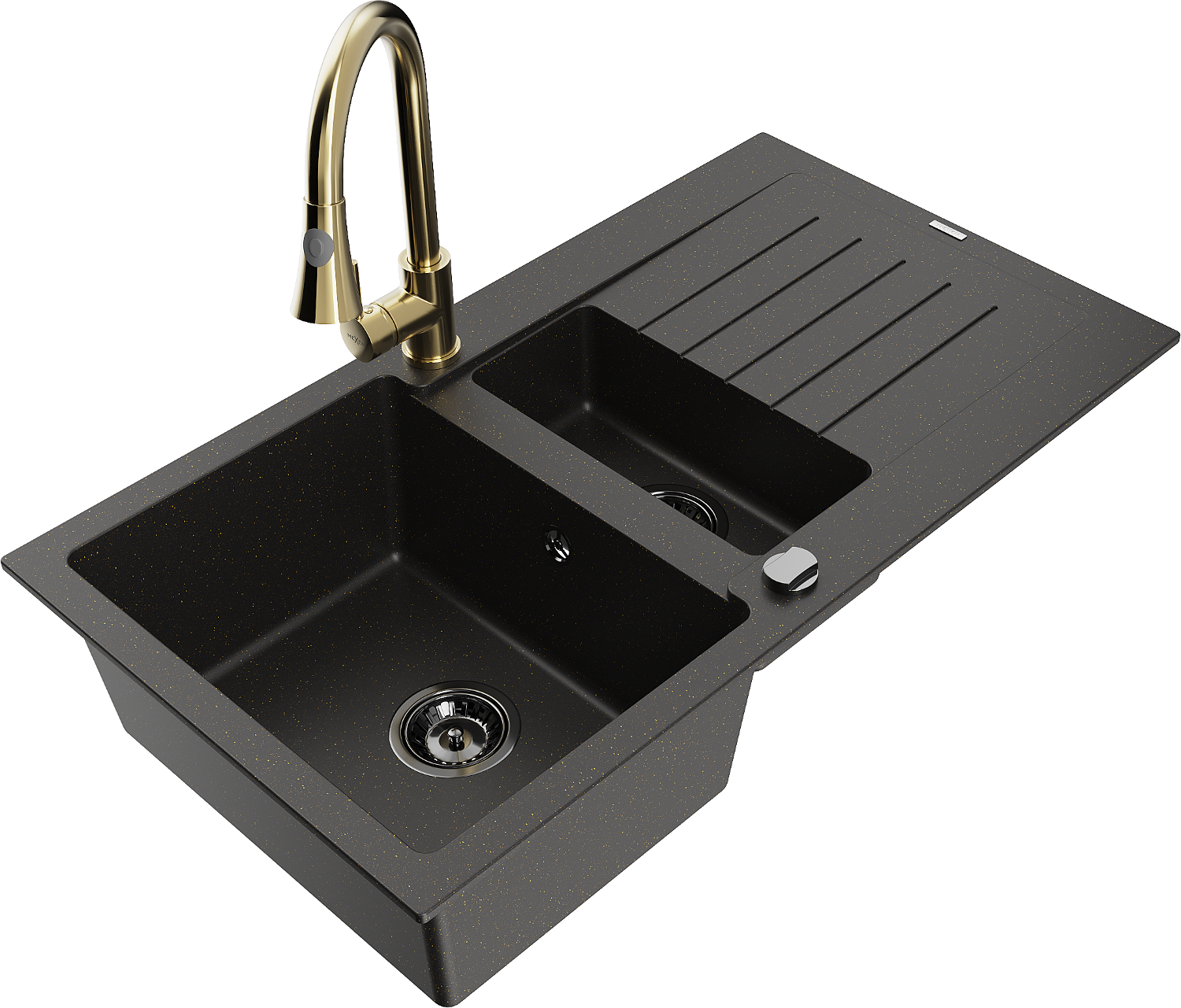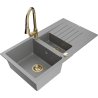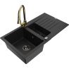 Mexen Matias granite sink 1.5-bowl with drainer and Elia kitchen tap, black/gold metallic - 6502-75-670101-50-B