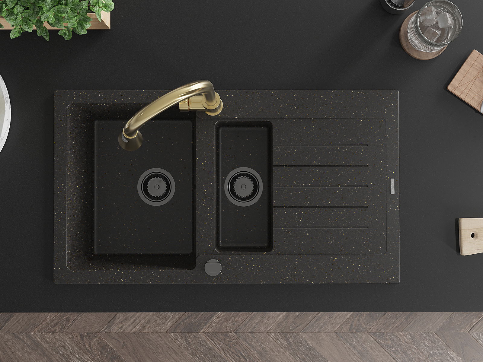 The sink is made of high quality granite. It is an elegant and, above all, practical complement to every kitchen, regardless of its style. High quality and granite durability ensure many years of use.