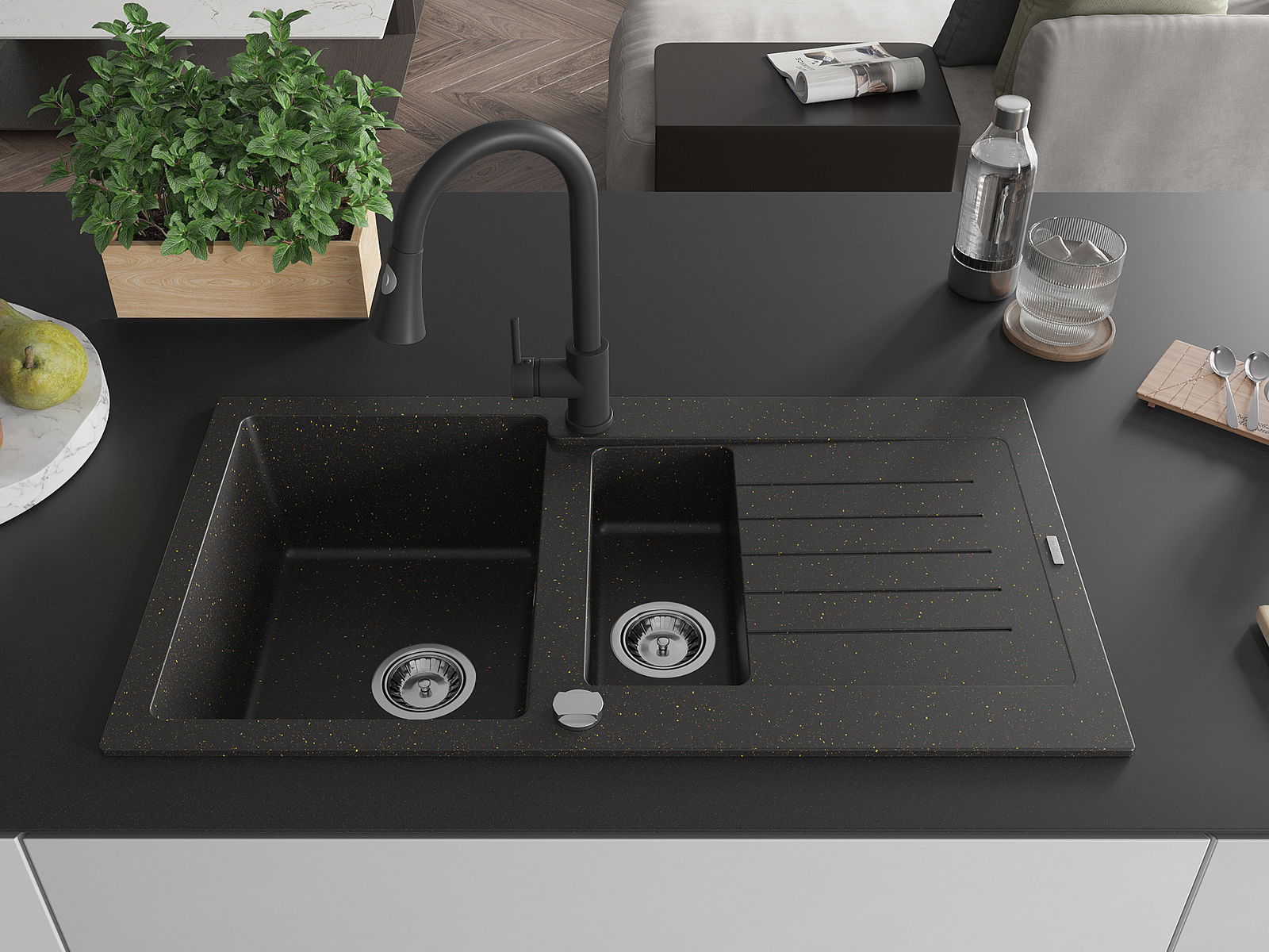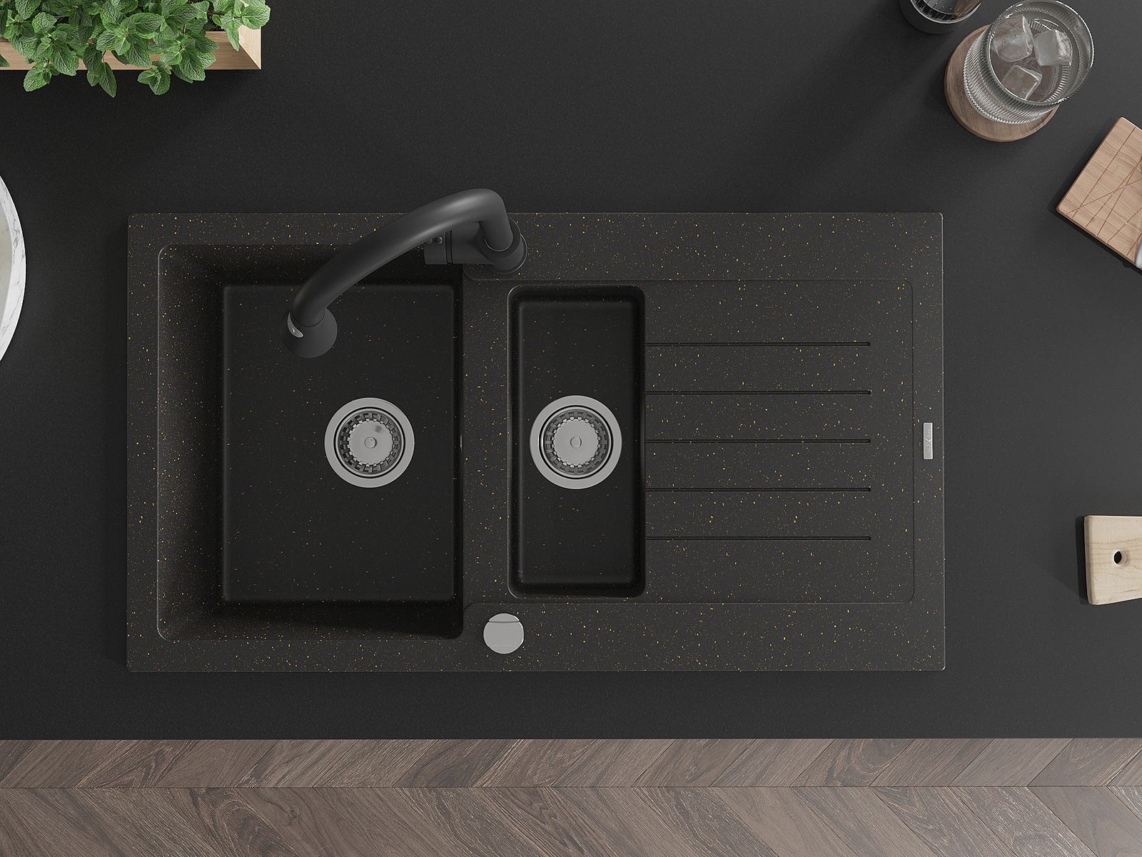 The sink is made of high quality granite. It is an elegant and, above all, practical complement to every kitchen, regardless of its style. High quality and granite durability ensure many years of use.