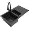 Mexen Matias granite sink 1.5-bowl with drainer and Elia kitchen tap, black speckled - 6502-76-670101-76