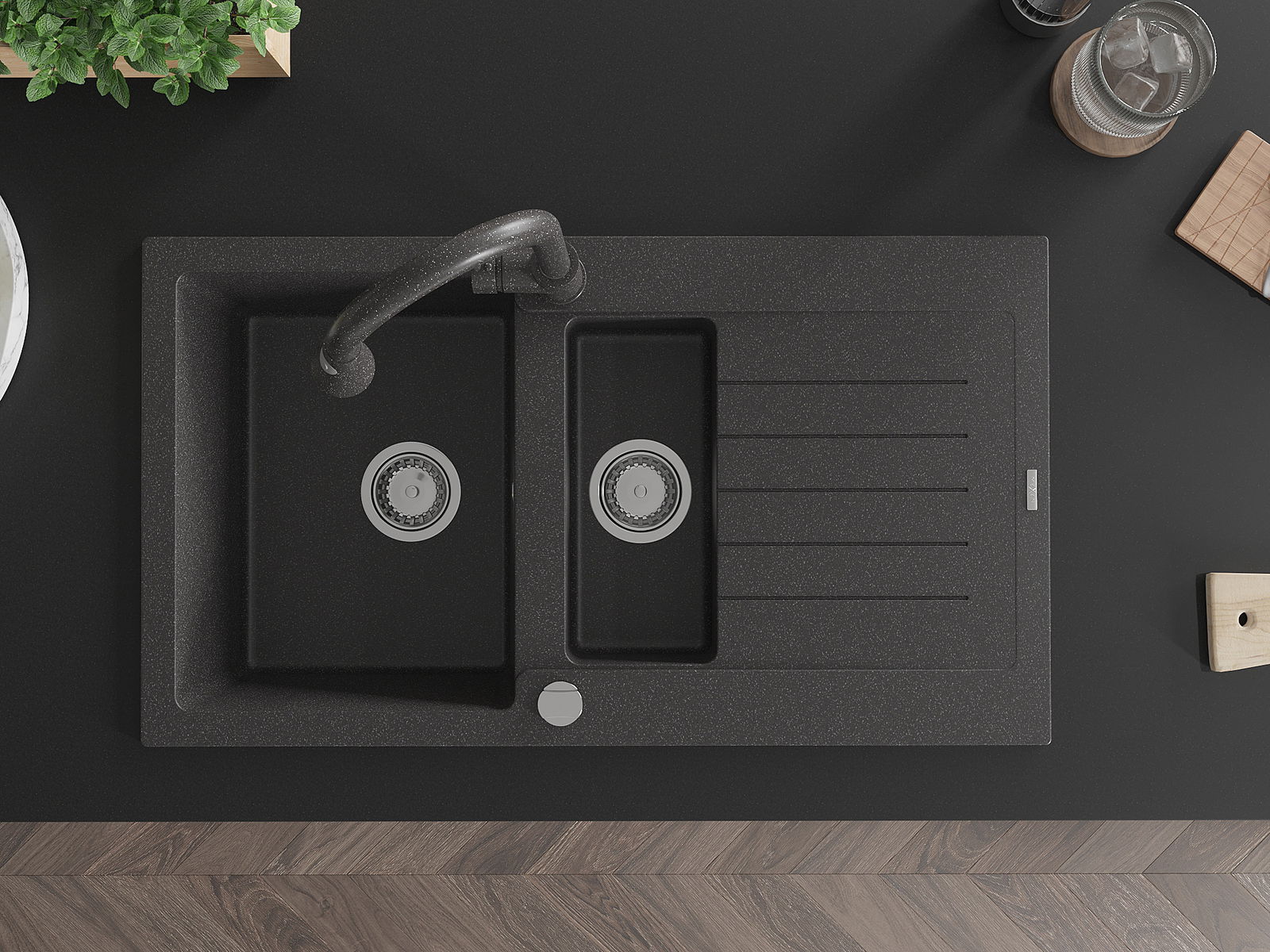 The sink is made of high quality granite. It is an elegant and, above all, practical complement to every kitchen, regardless of its style. High quality and granite durability ensure many years of use.