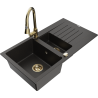 Mexen Matias granite sink 1.5-bowl with drainer and Elia kitchen tap, black - 6502-77-670101-50