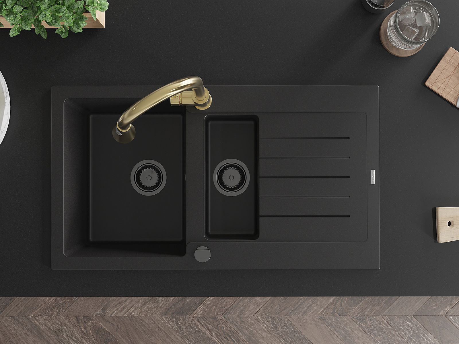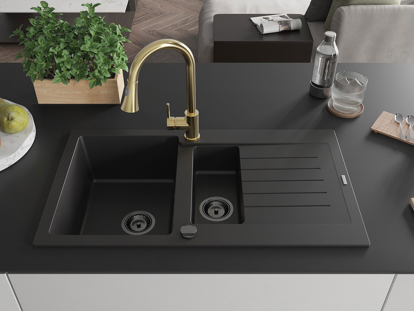 The sink is made of high quality granite. It is an elegant and, above all, practical complement to every kitchen, regardless of its style. High quality and granite durability ensure many years of use.