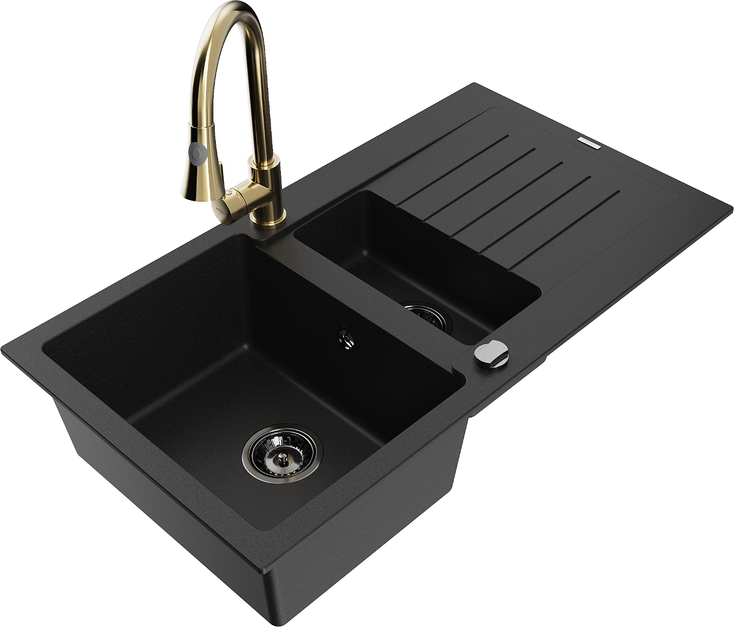 Mexen Matias granite sink 1.5-bowl with drainer and Elia kitchen mixer tap, black - 6502-77-670101-50-B