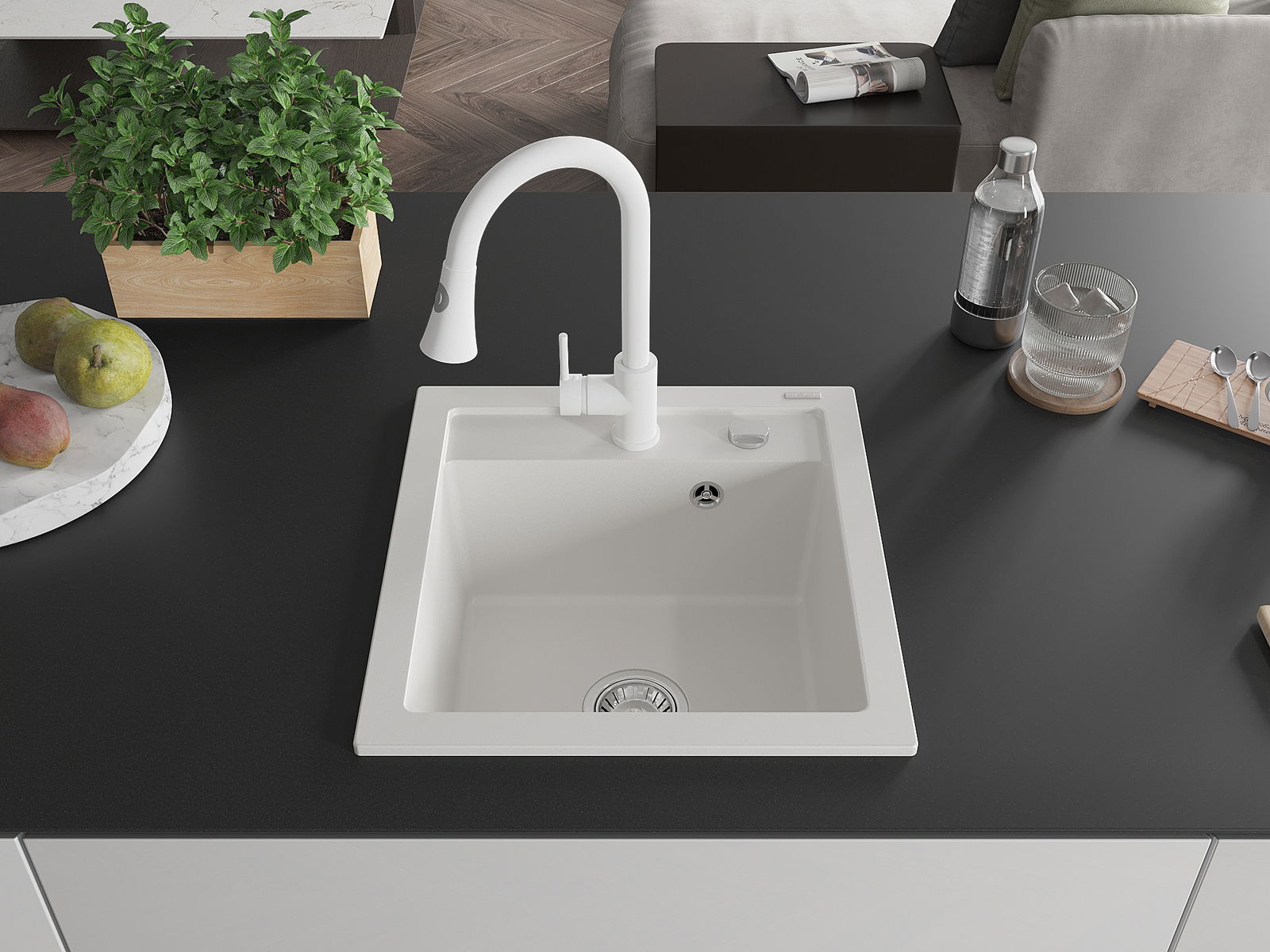 The surface of the sink is resistant to stains and discoloration, thanks to which it is easy to clean and retains its color for a long time. Aesthetic and practically complementing every kitchen.