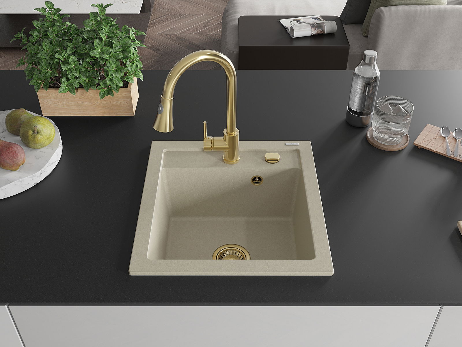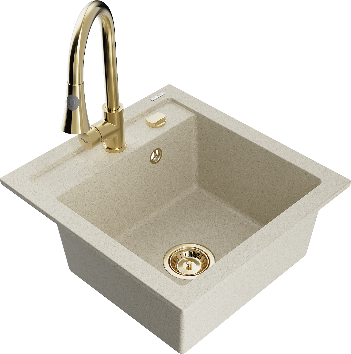 Mexen Vito 1-bowl granite sink with Elia kitchen tap, beige - 6503-69-670101-50
