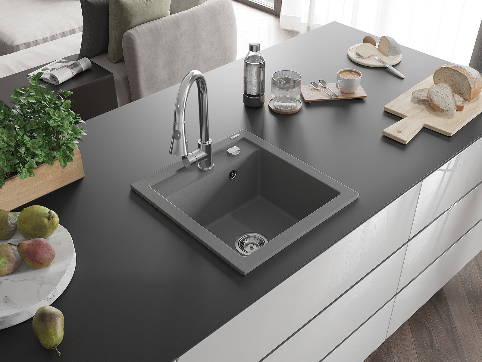 The surface of the sink is resistant to stains and discoloration, thanks to which it is easy to clean and retains its color for a long time. Aesthetic and practically complementing every kitchen.