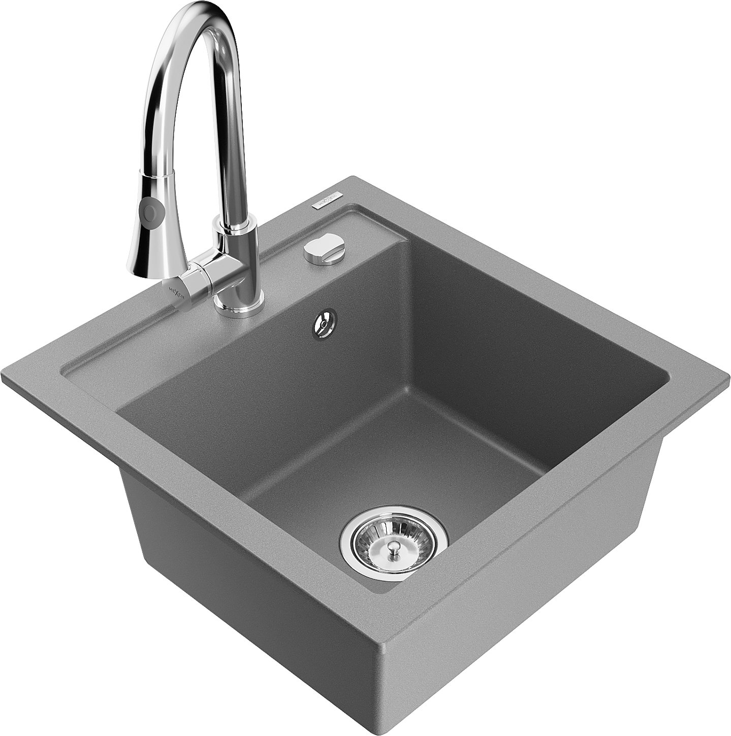 Mexen Vito 1-bowl Granite Sink with Elia Kitchen Tap, Grey - 6503-71-670101-00