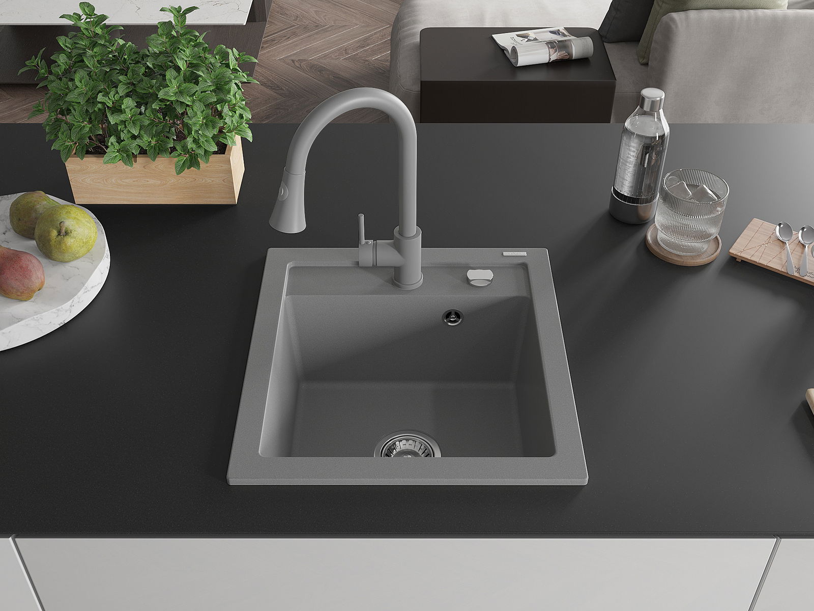 Mexen Vito granite kitchen sink 1-bowl with kitchen tap Elia, grey - 6503-71-670101-71