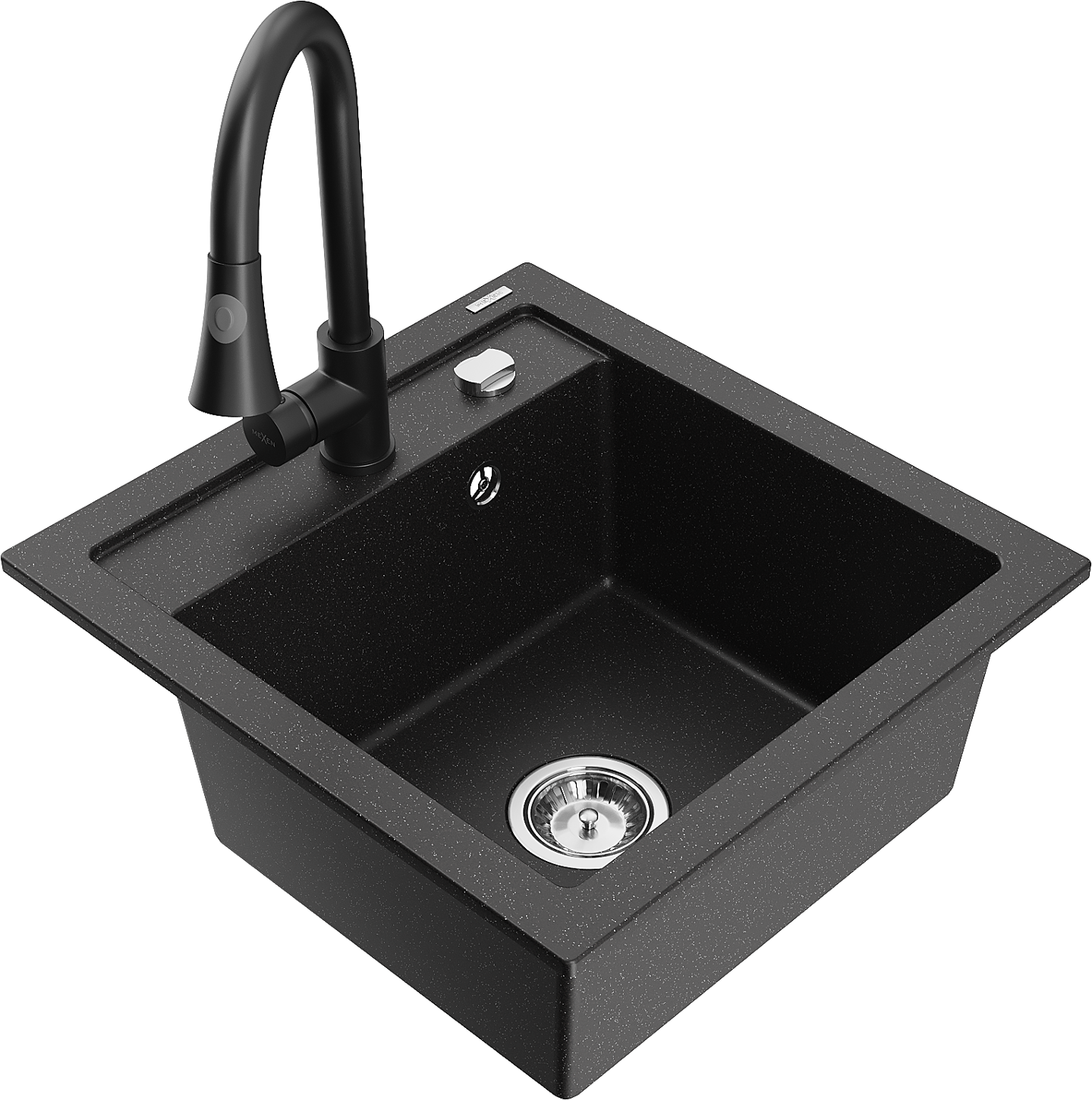 Mexen Vito 1-bowl Granite Kitchen Sink with Elia Kitchen Tap, Black/Silver Metallic - 6503-73-670101-70