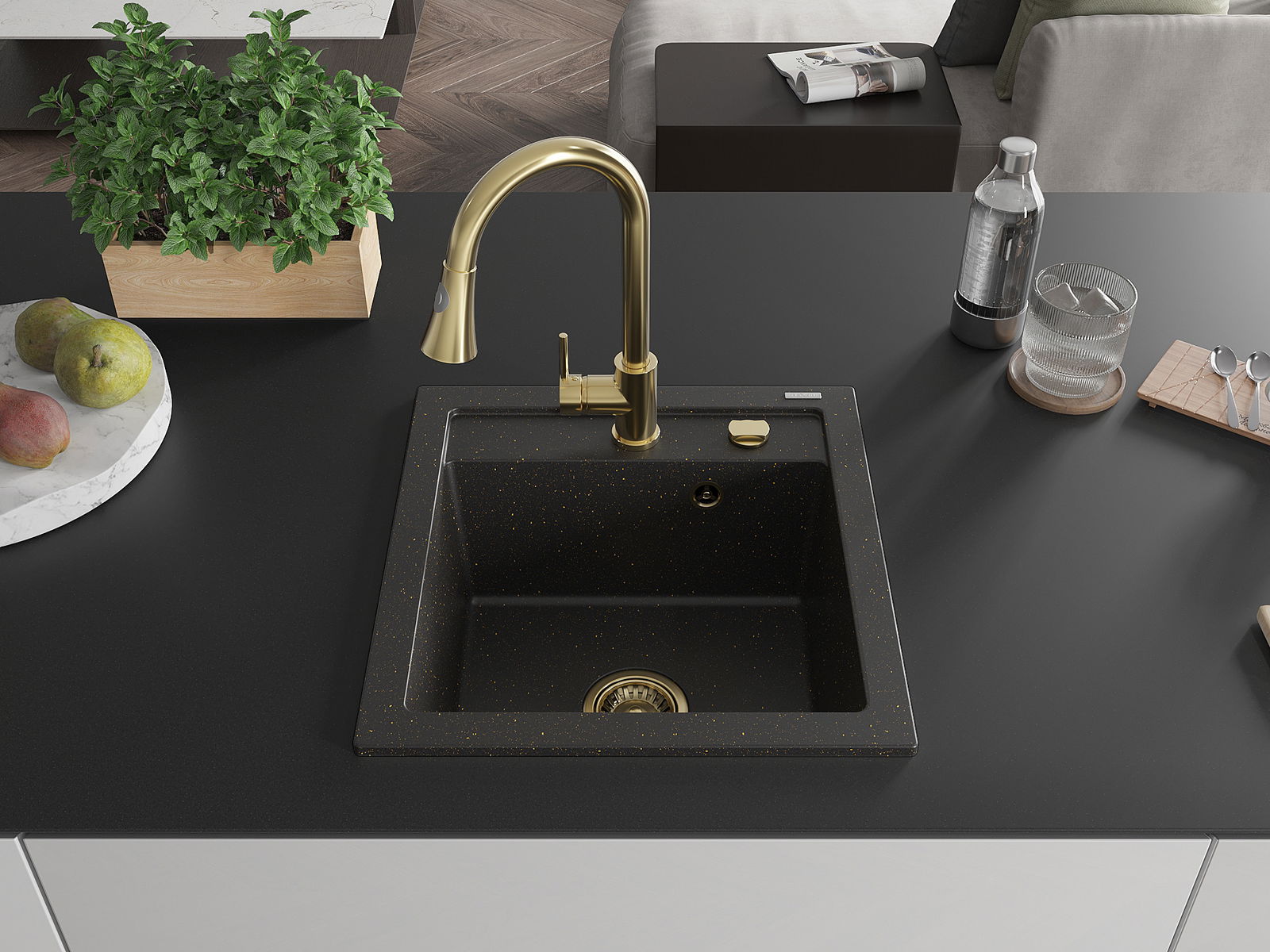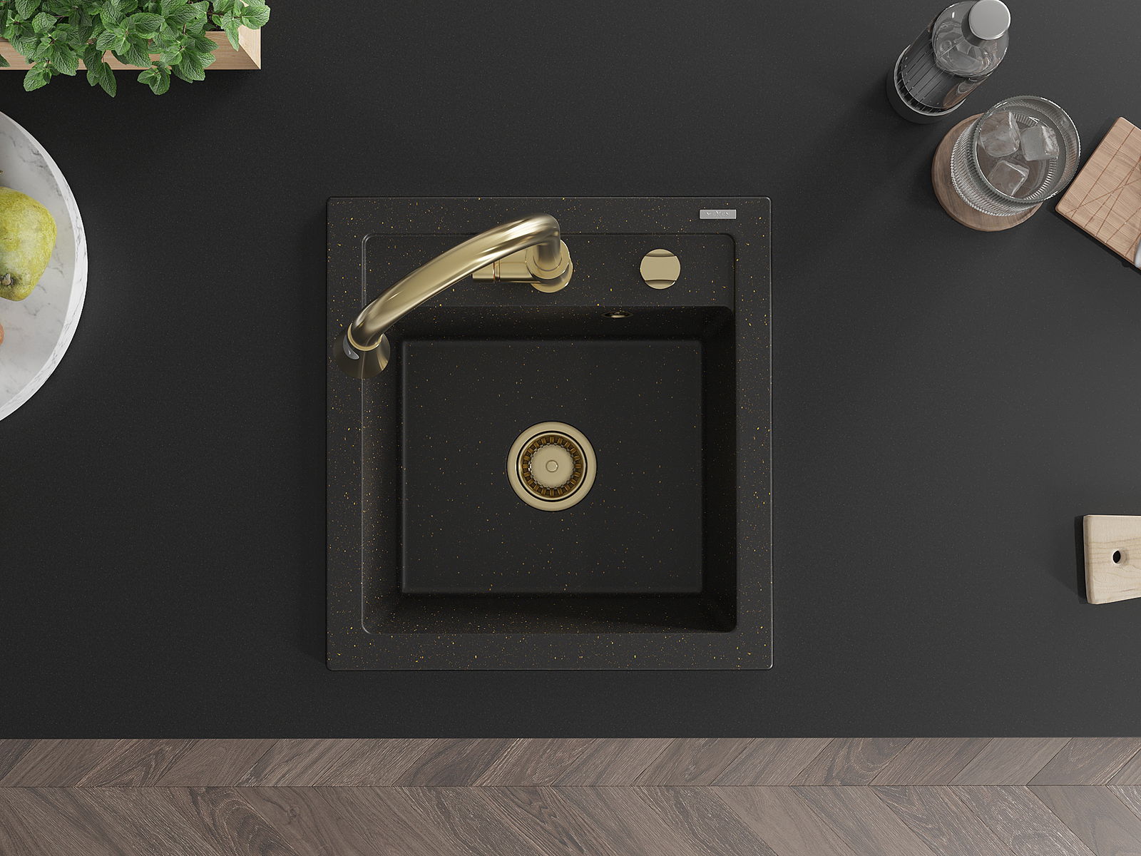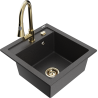 Mexen Vito granite sink 1-bowl with Elia kitchen tap, black/gold metallic - 6503-75-670101-50