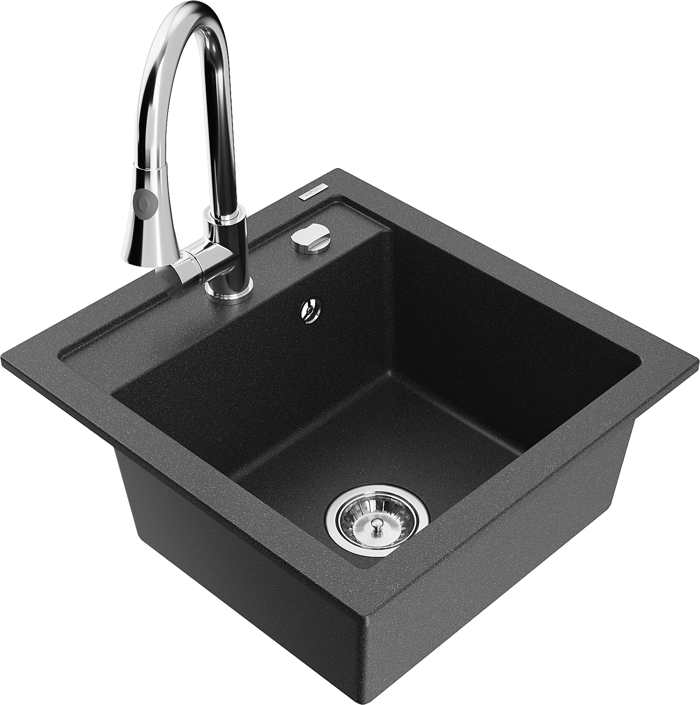 Mexen Vito 1-bowl granite sink with Elia kitchen tap, black speckled - 6503-76-670101-00