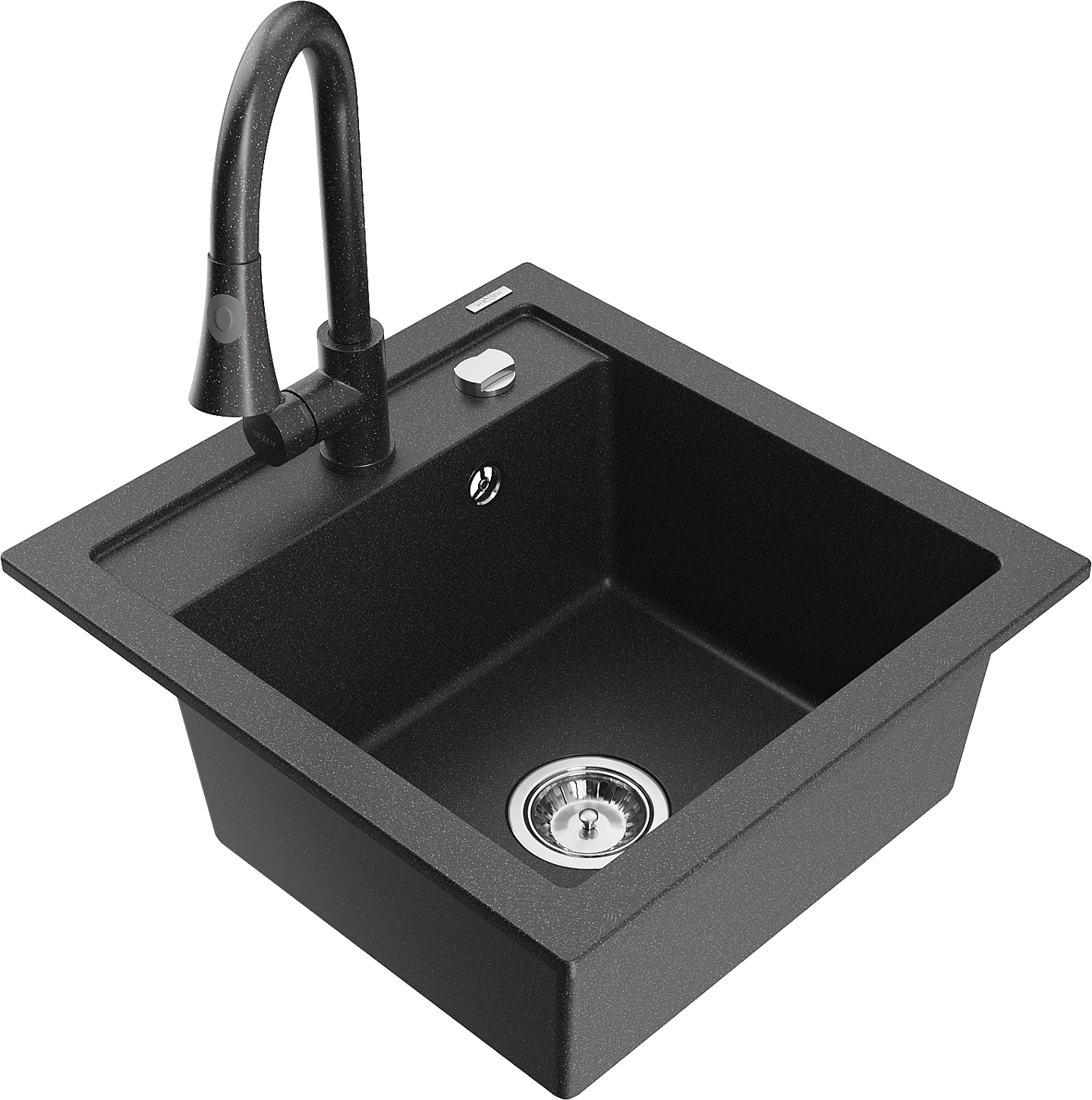 Mexen Vito 1-bowl granite sink with Elia kitchen tap, speckled black - 6503-76-670101-76