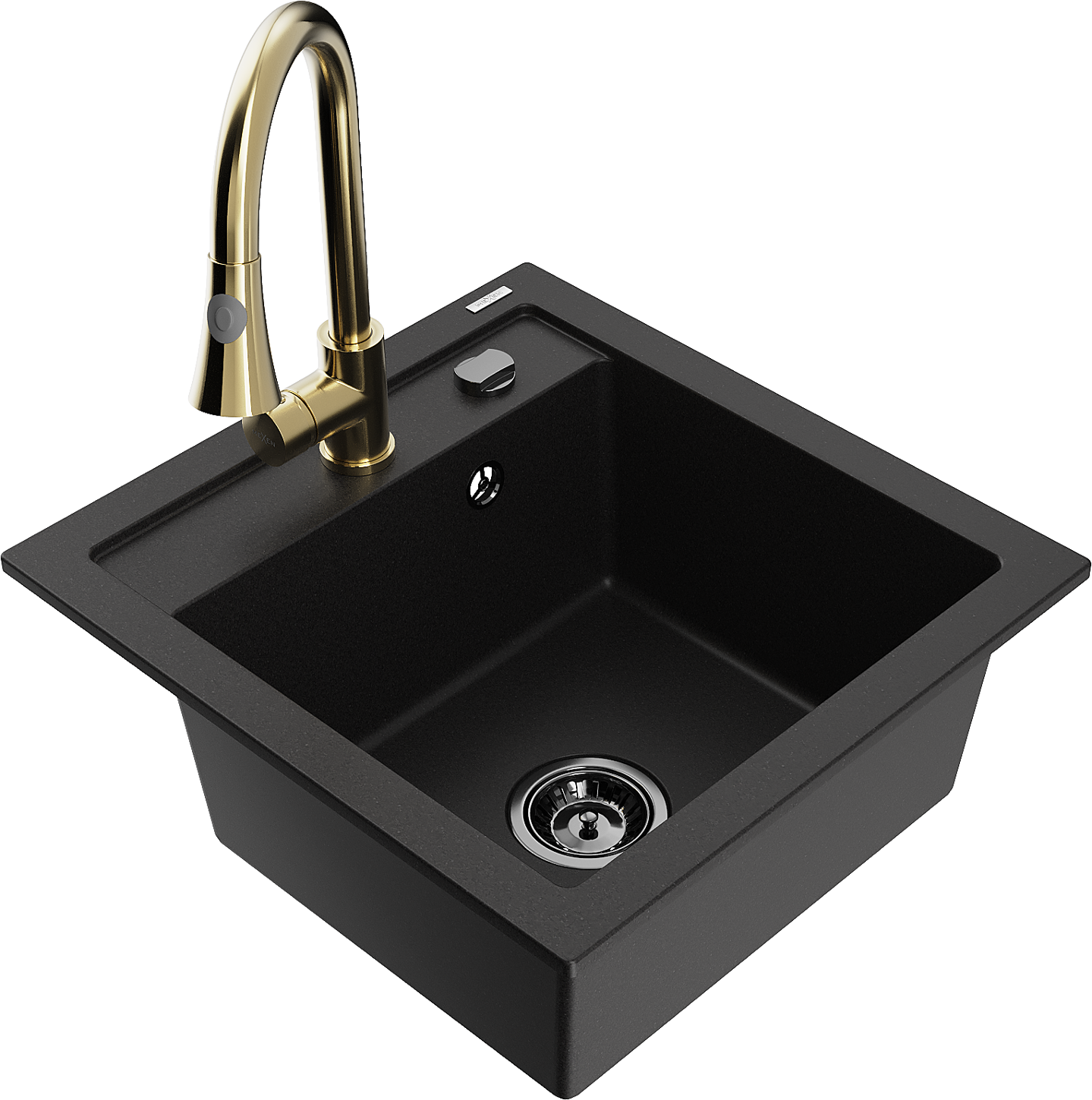 Mexen Vito Granite Sink 1-Bowl with Elia Kitchen Tap, Black - 6503-77-670101-50-B