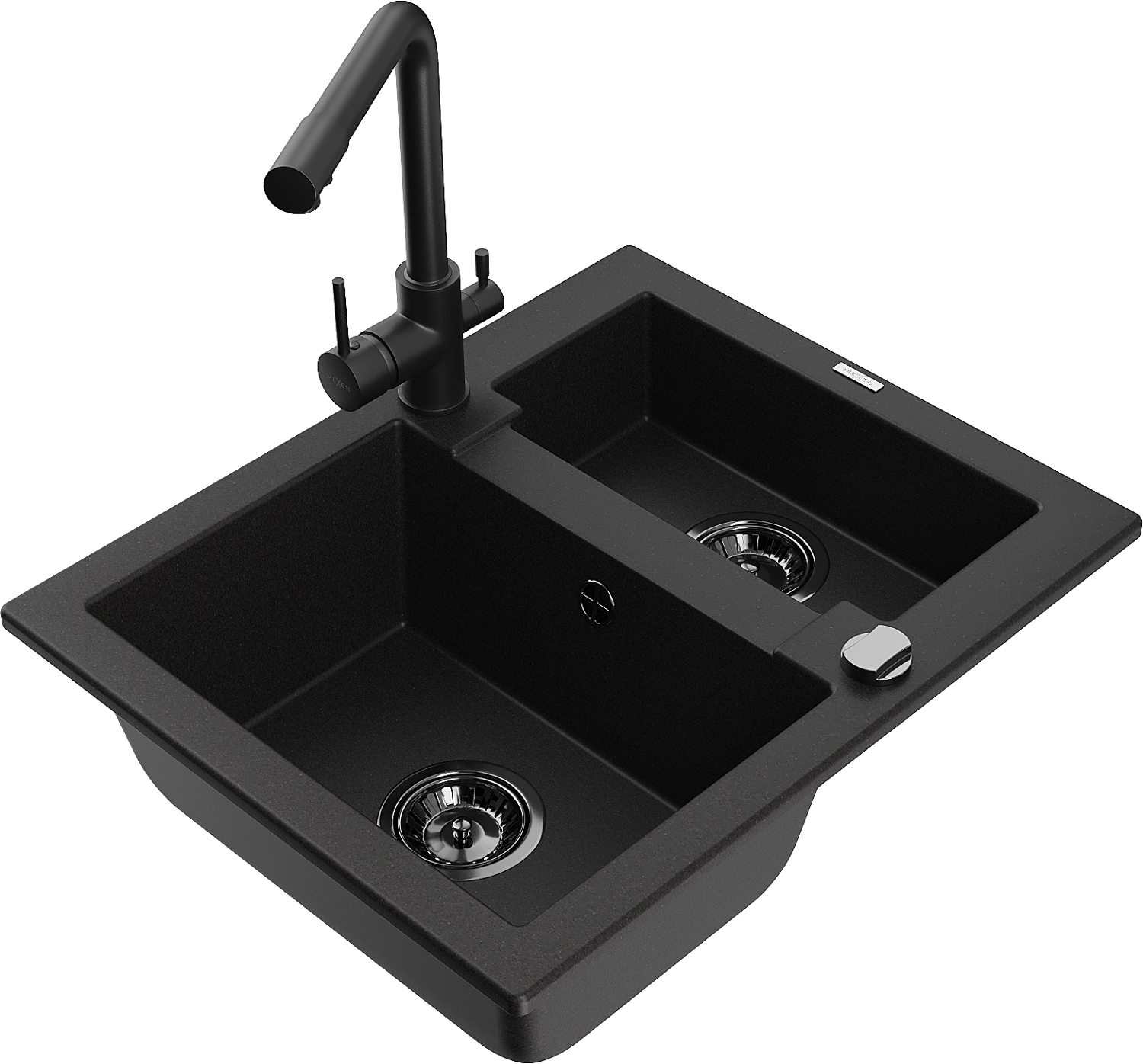 Mexen Carlos granite sink 1.5-bowl with Duero kitchen tap, black - 6518-77-671600-70-B