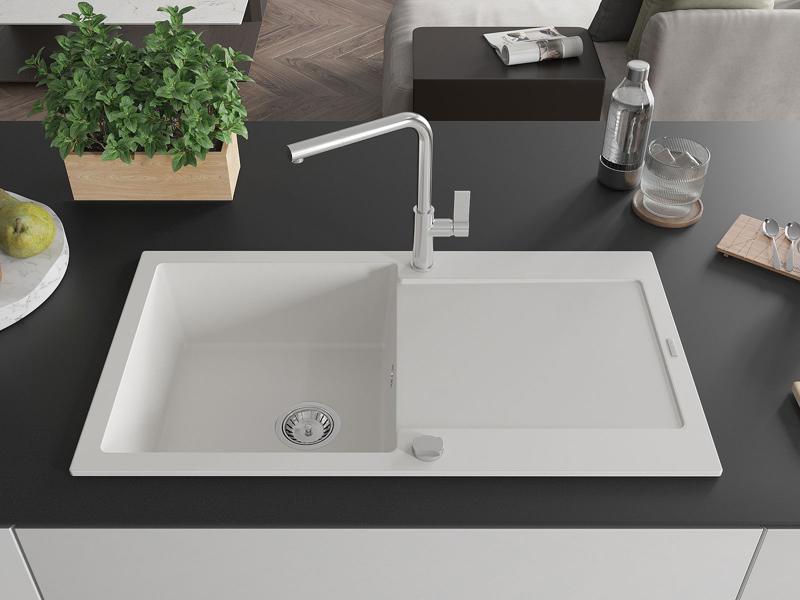 The surface of the sink is resistant to stains and discoloration, thanks to which it is easy to clean and retains its color for a long time. Aesthetic and practically complementing every kitchen.