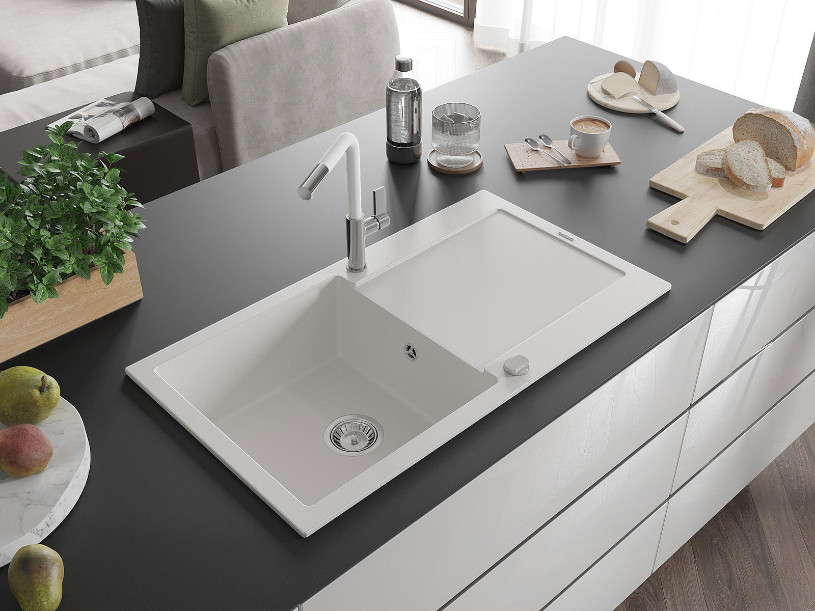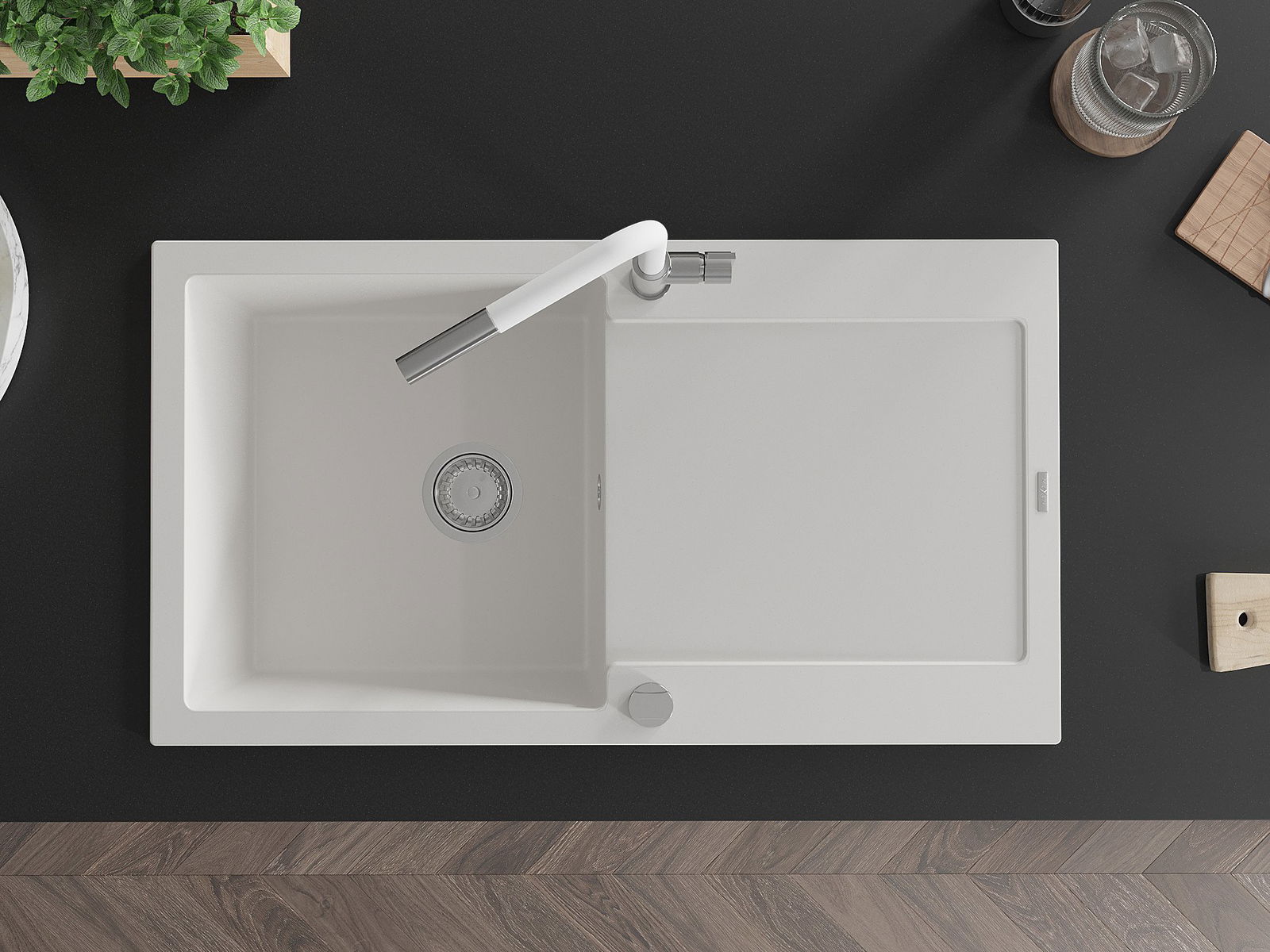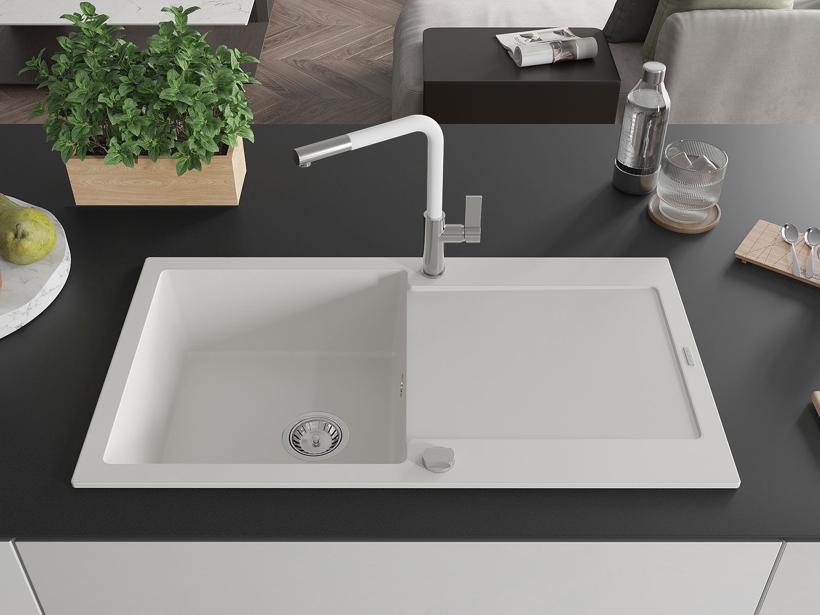 The surface of the sink is resistant to stains and discoloration, thanks to which it is easy to clean and retains its color for a long time. Aesthetic and practically complementing every kitchen.