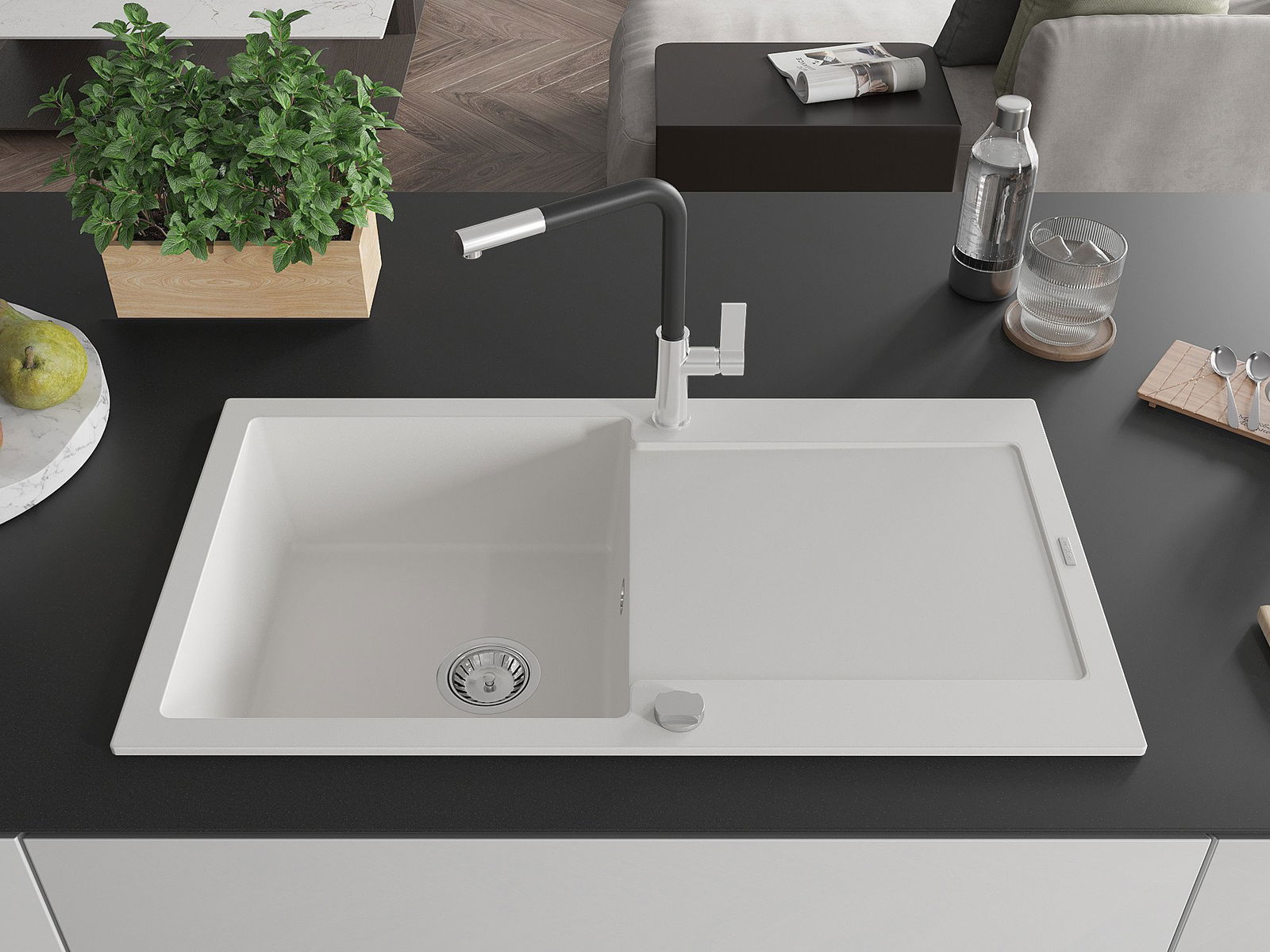 The surface of the sink is resistant to stains and discoloration, thanks to which it is easy to clean and retains its color for a long time. Aesthetic and practically complementing every kitchen.