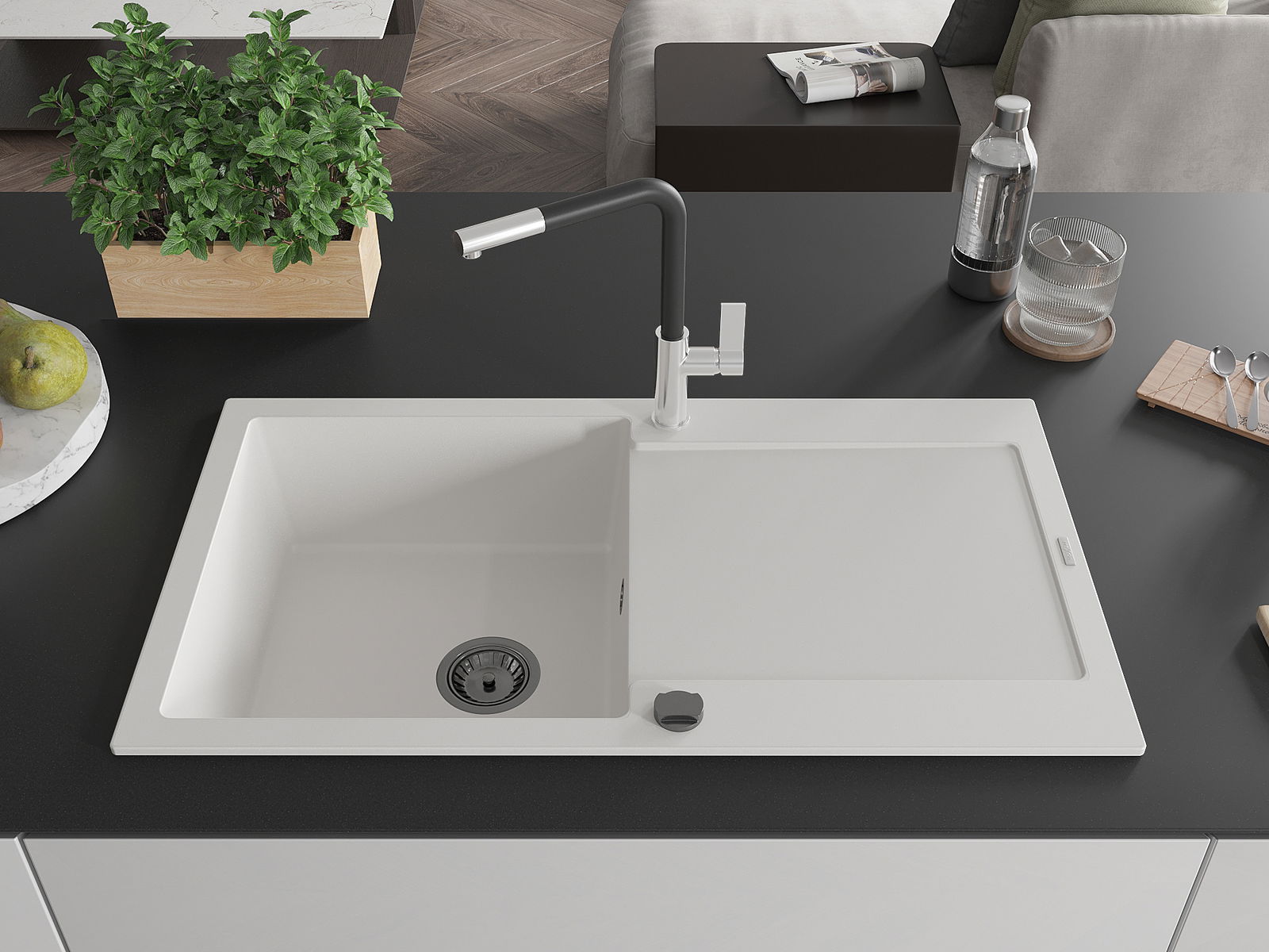 The surface of the sink is resistant to stains and discoloration, thanks to which it is easy to clean and retains its color for a long time. Aesthetic and practically complementing every kitchen.