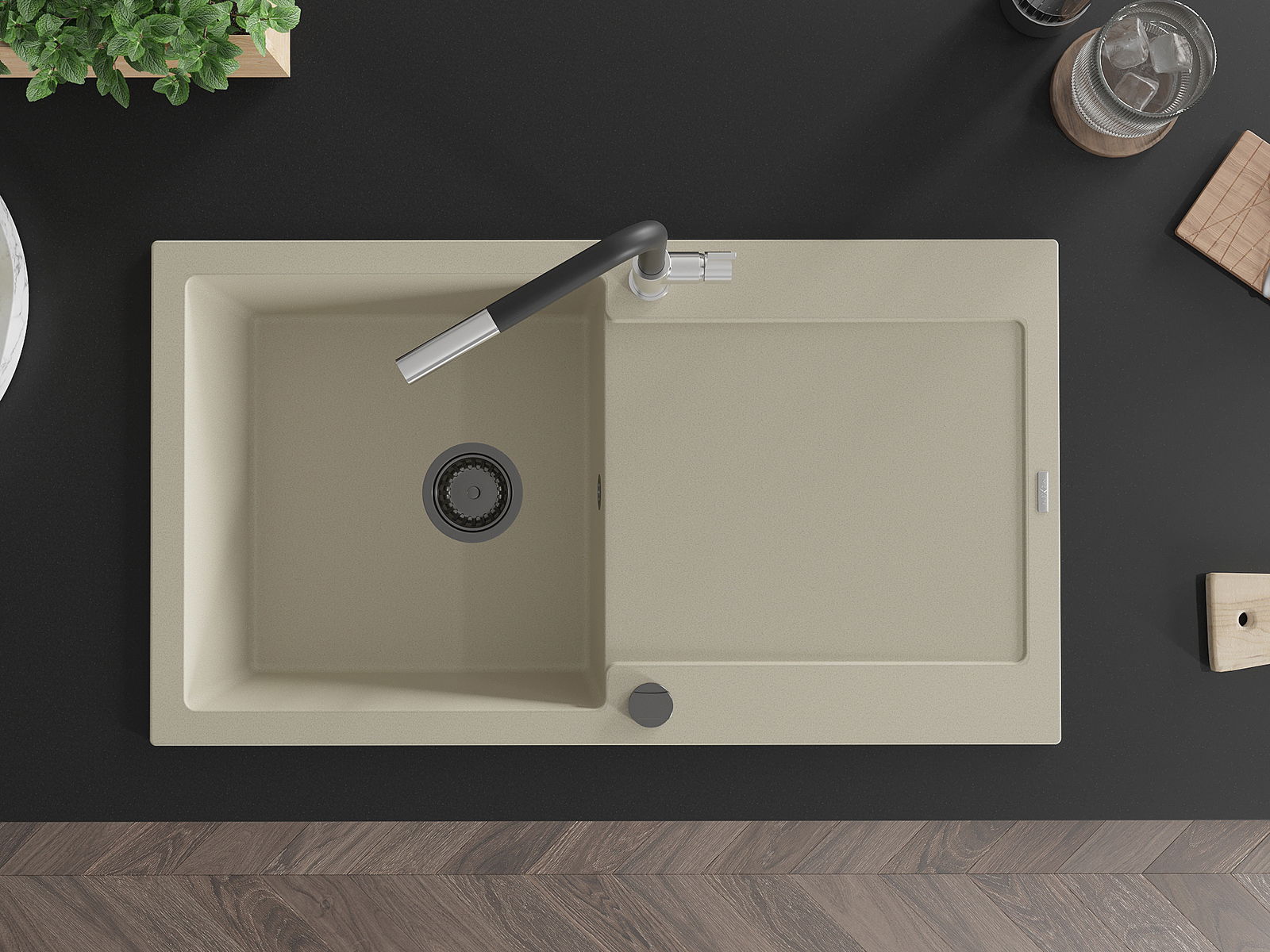 The sink is made of high quality granite. It is an elegant and, above all, practical complement to every kitchen, regardless of its style. High quality and granite durability ensure many years of use.