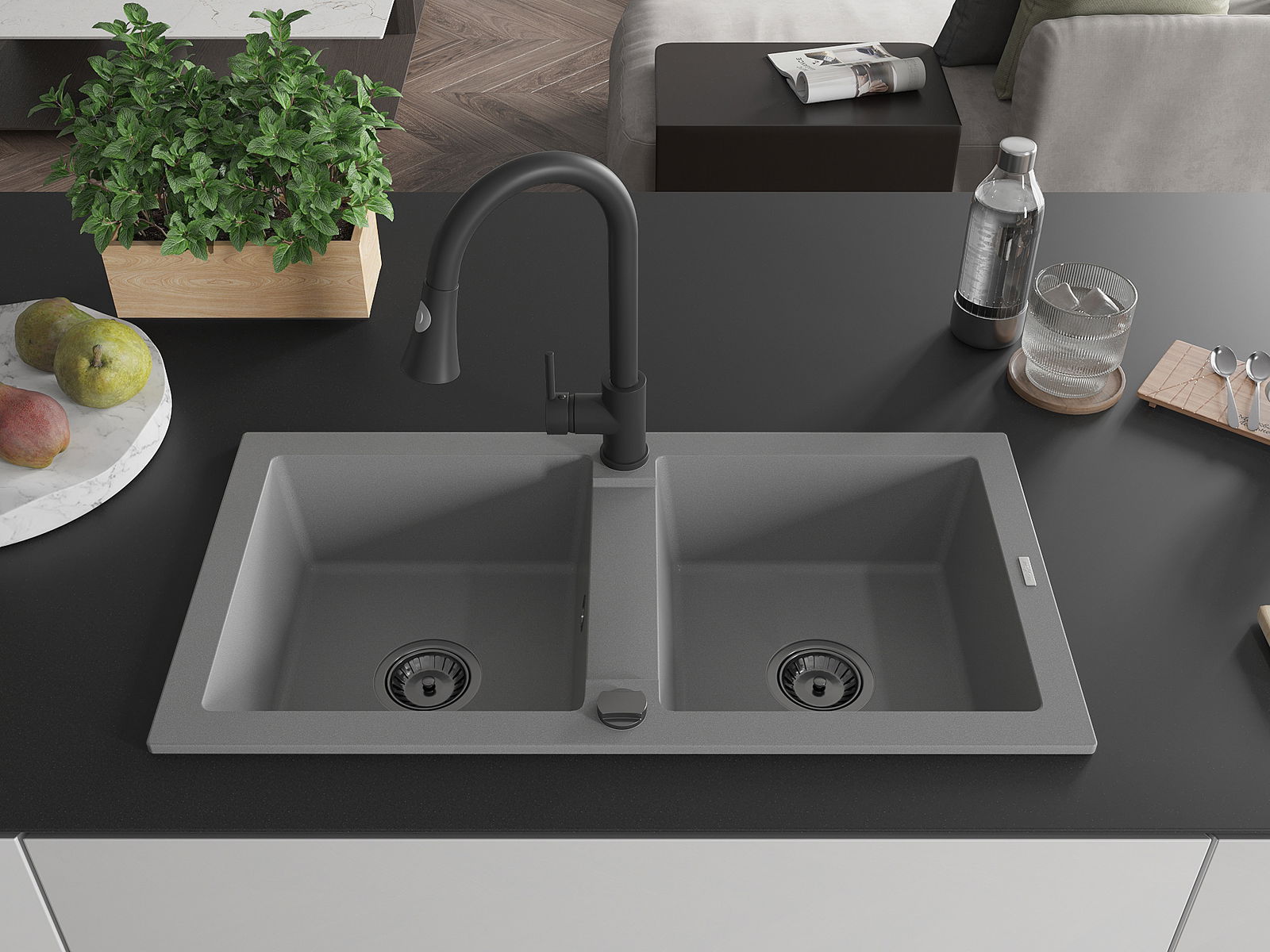 The sink is made of high quality granite. It is an elegant and, above all, practical complement to every kitchen, regardless of its style. High quality and granite durability ensure many years of use.