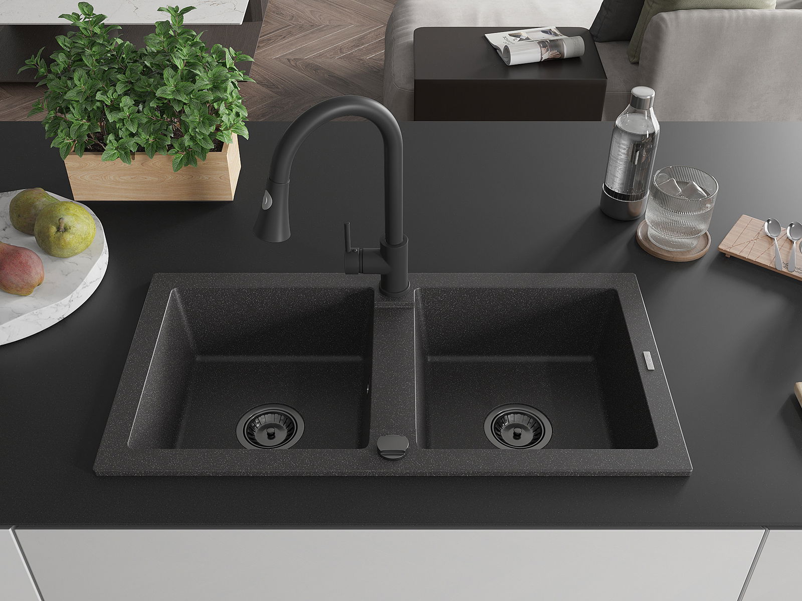 The sink is made of high quality granite. It is an elegant and, above all, practical complement to every kitchen, regardless of its style. High quality and granite durability ensure many years of use.