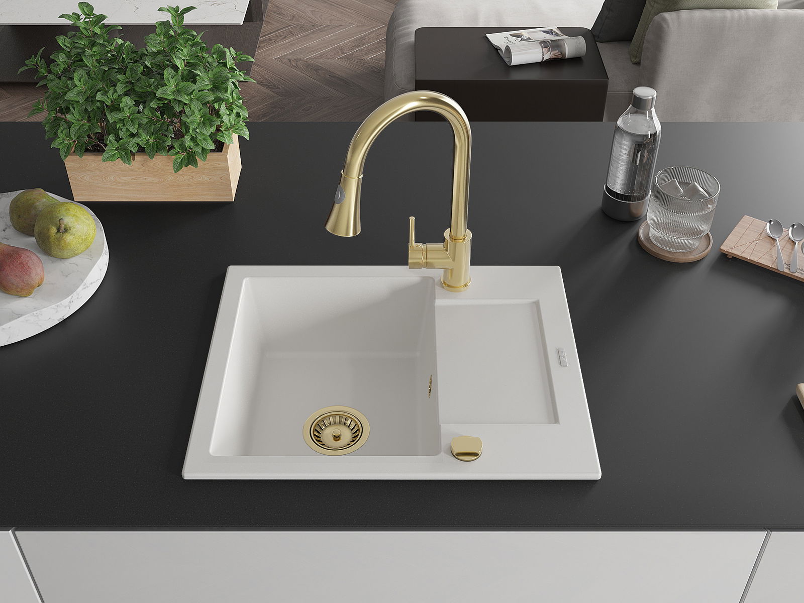The surface of the sink is resistant to stains and discoloration, thanks to which it is easy to clean and retains its color for a long time. Aesthetic and practically complementing every kitchen.