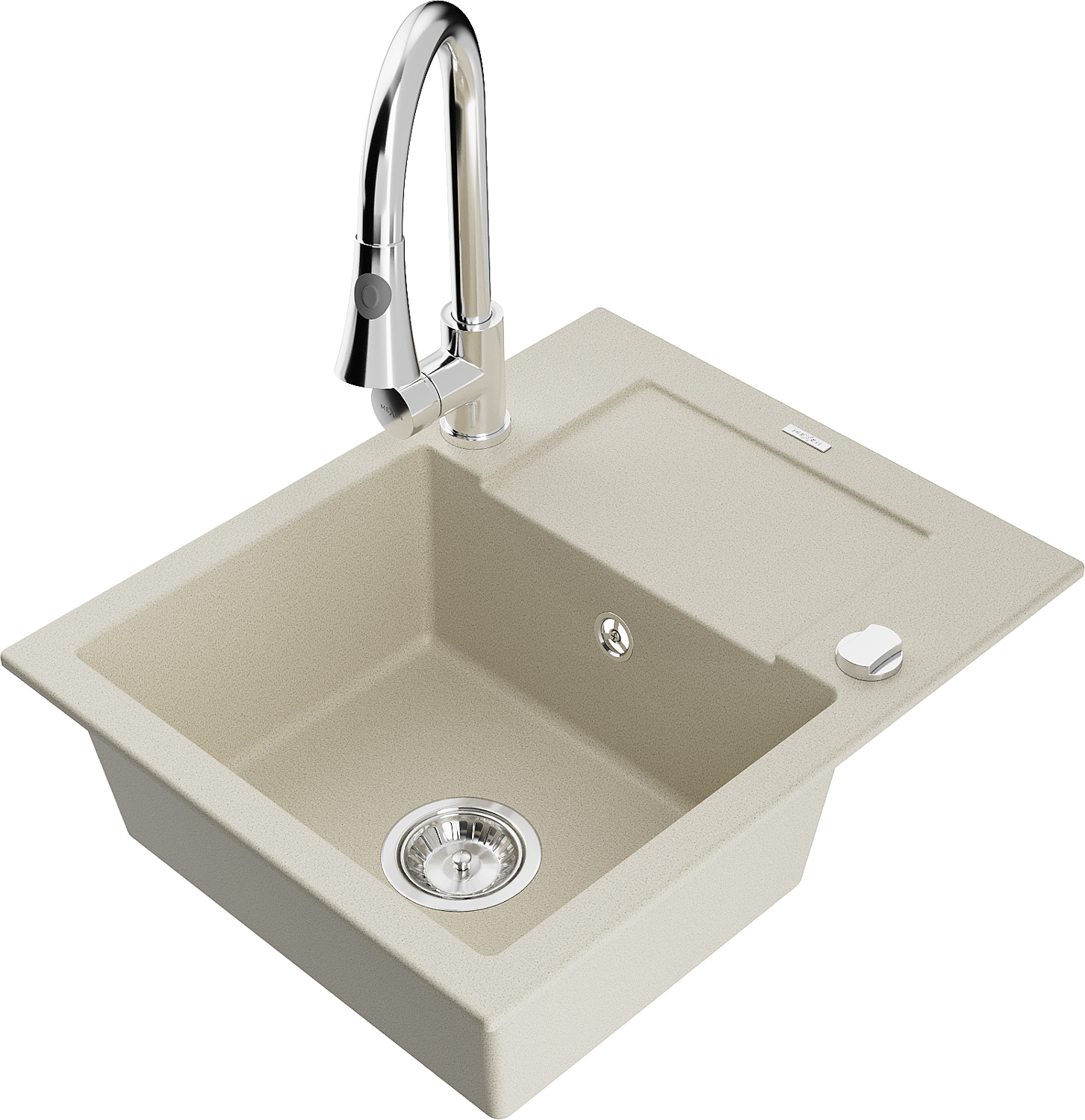 Mexen Enzo granite sink 1-bowl with drainer and Elia kitchen tap set, beige - 6506-69-670101-00