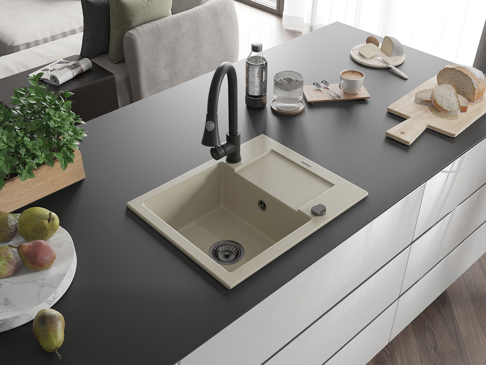 The sink is made of high quality granite. It is an elegant and, above all, practical complement to every kitchen, regardless of its style. High quality and granite durability ensure many years of use.