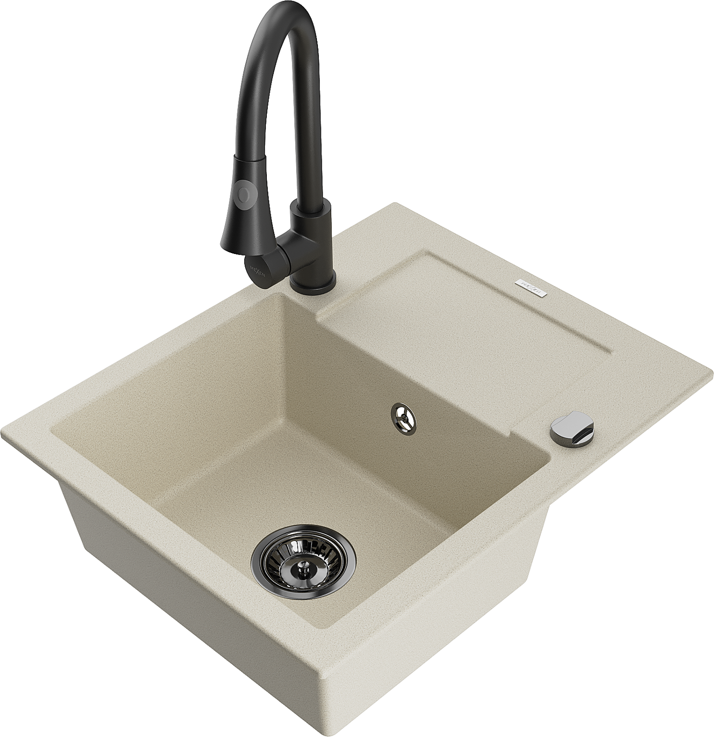 Mexen Enzo single-bowl granite sink with drainer and Elia kitchen tap, beige - 6506-69-670101-70