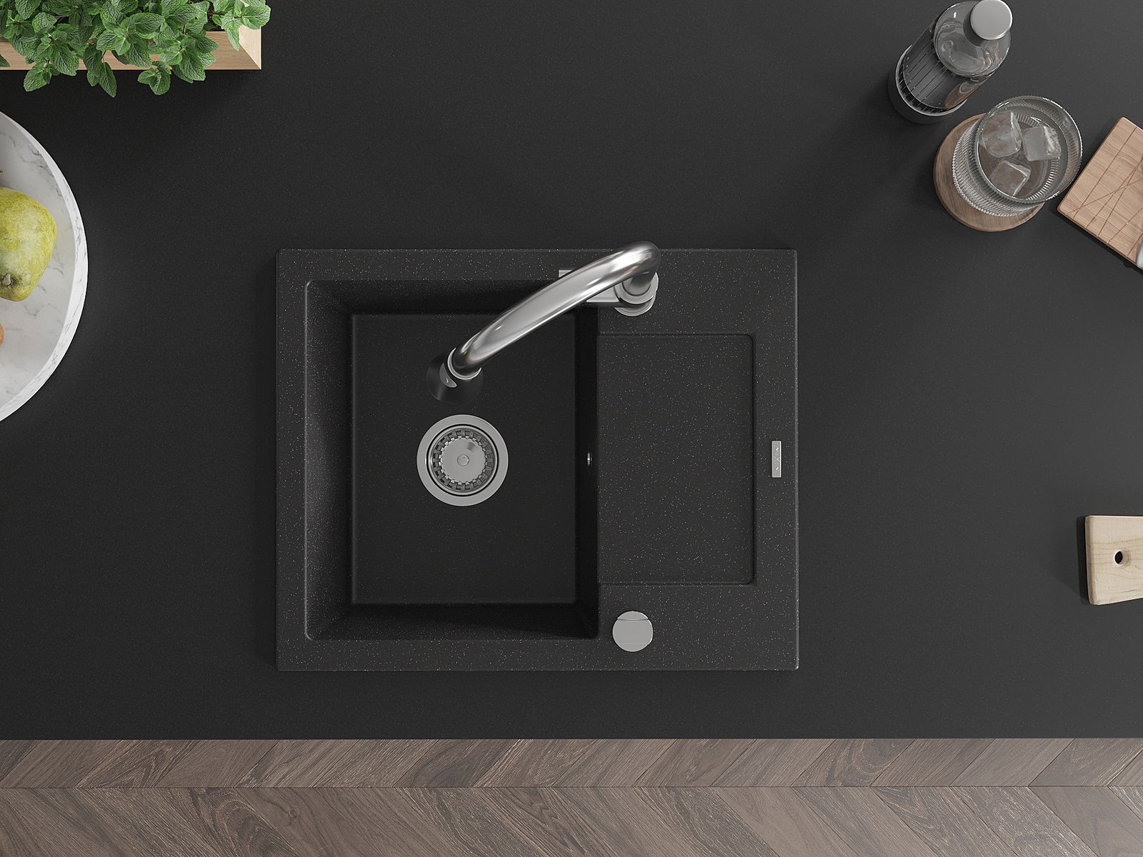 The sink is made of high quality granite. It is an elegant and, above all, practical complement to every kitchen, regardless of its style. High quality and granite durability ensure many years of use.
