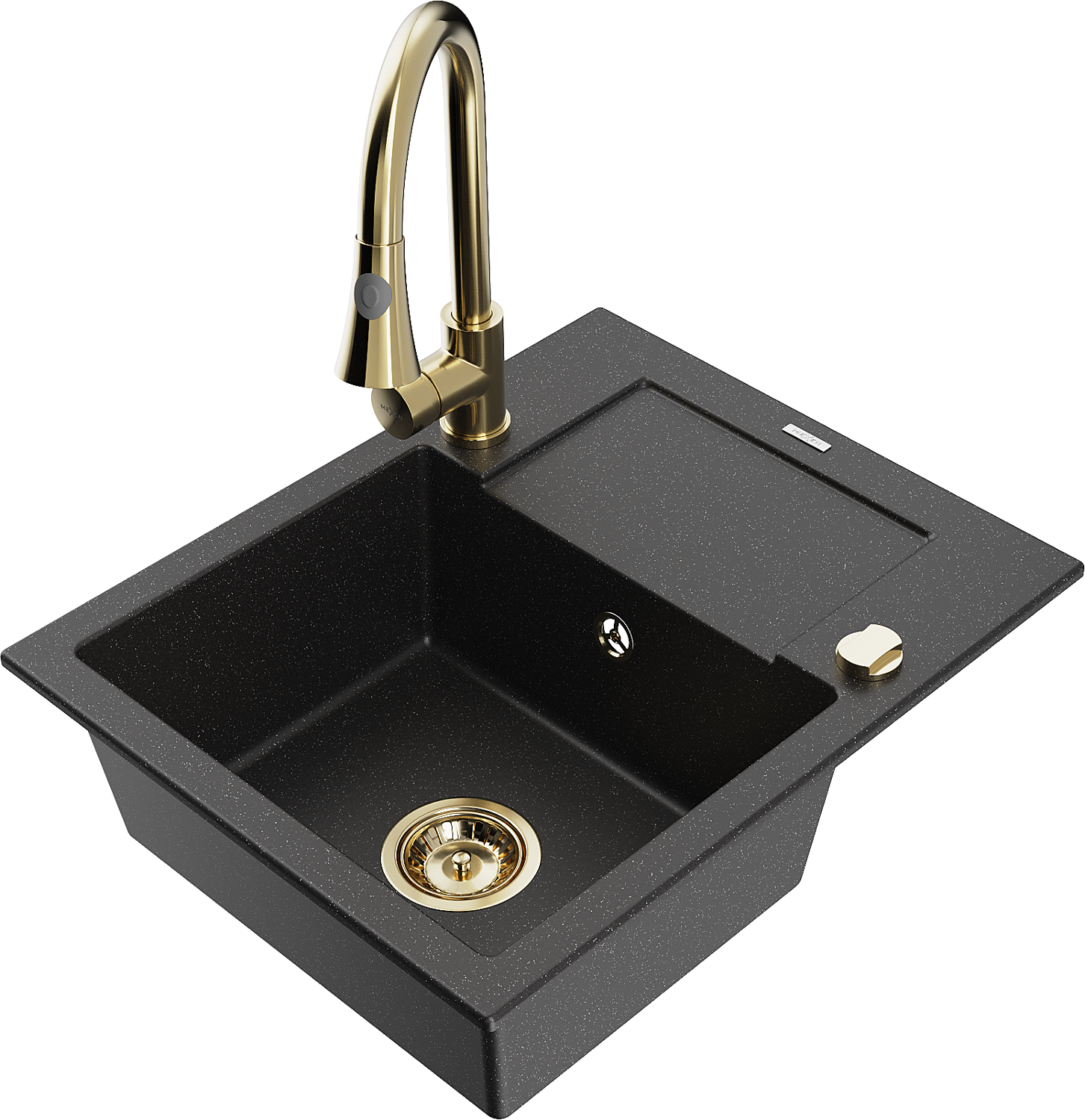 Mexen Enzo 1-bowl granite sink with drainer and Elia kitchen tap, black/silver metallic - 6506-73-670101-50