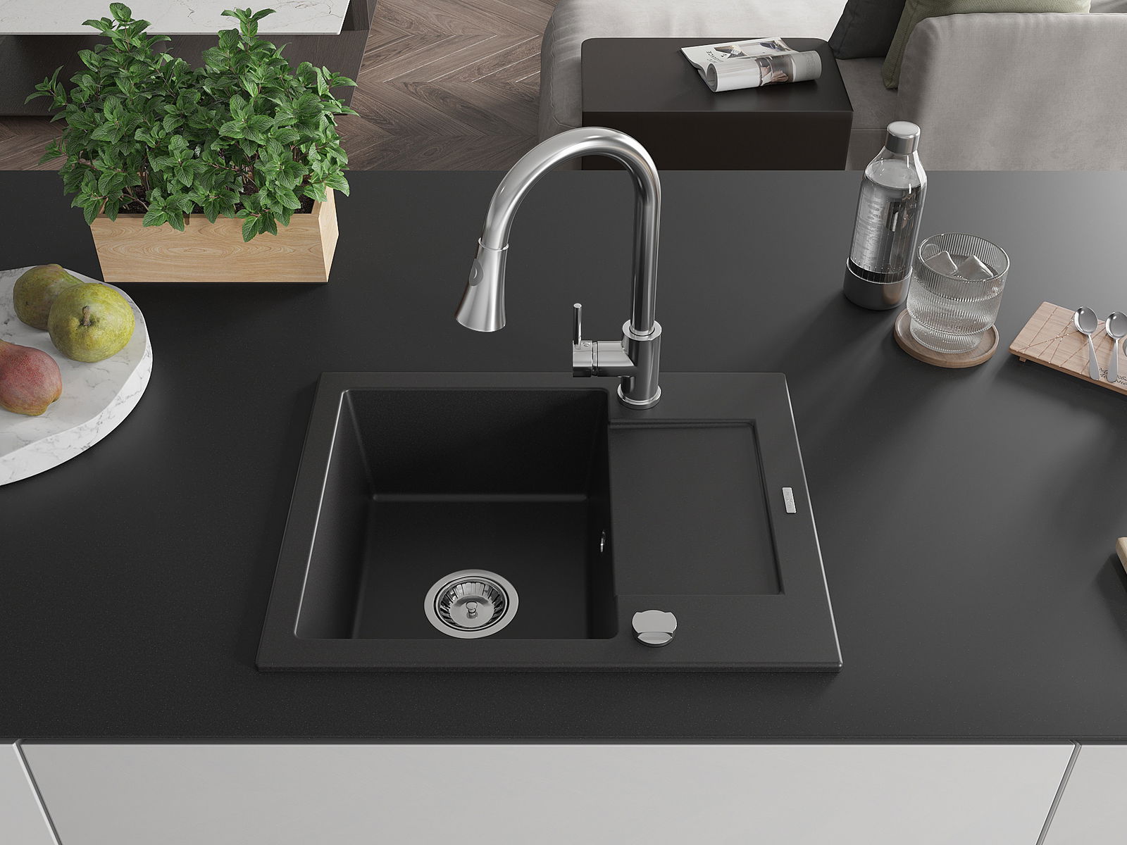 The sink is made of high quality granite. It is an elegant and, above all, practical complement to every kitchen, regardless of its style. High quality and granite durability ensure many years of use.