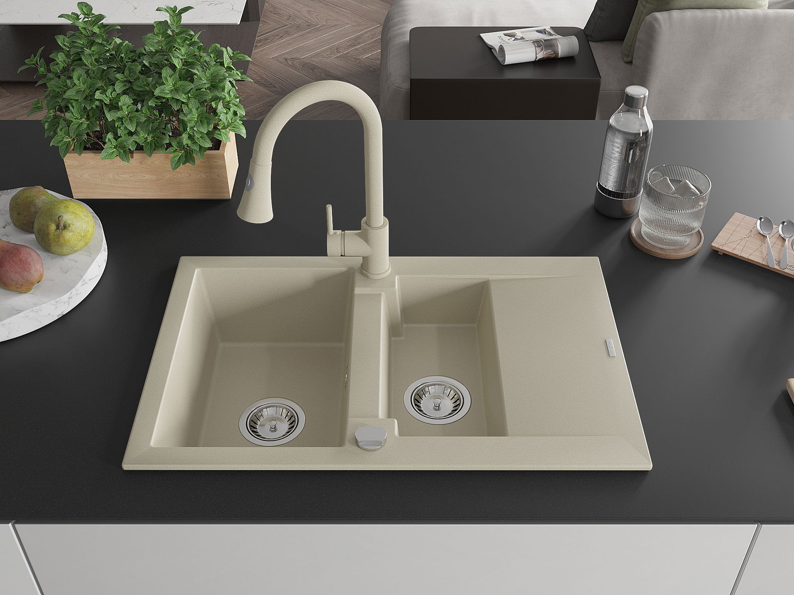 The sink is made of high quality granite. It is an elegant and, above all, practical complement to every kitchen, regardless of its style. High quality and granite durability ensure many years of use.