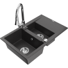 Mexen Gaspar 1.5-bowl granite sink with drainer and Elia kitchen tap, grey - 6507-71-670101-00
