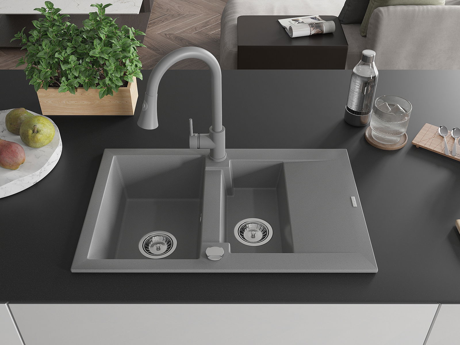 The sink is made of high quality granite. It is an elegant and, above all, practical complement to every kitchen, regardless of its style. High quality and granite durability ensure many years of use.