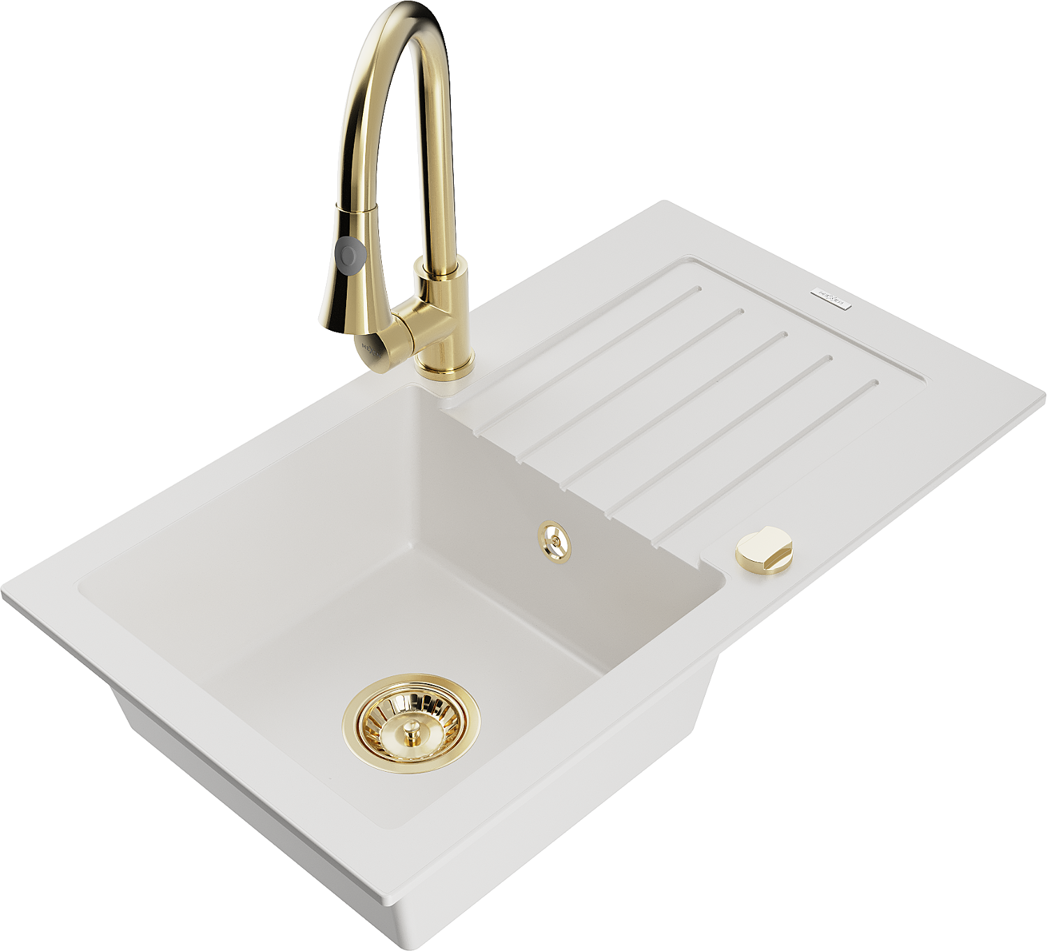 Mexen Pablo 1-bowl granite sink with drainer and Elia kitchen tap, white - 6510-20-670101-50