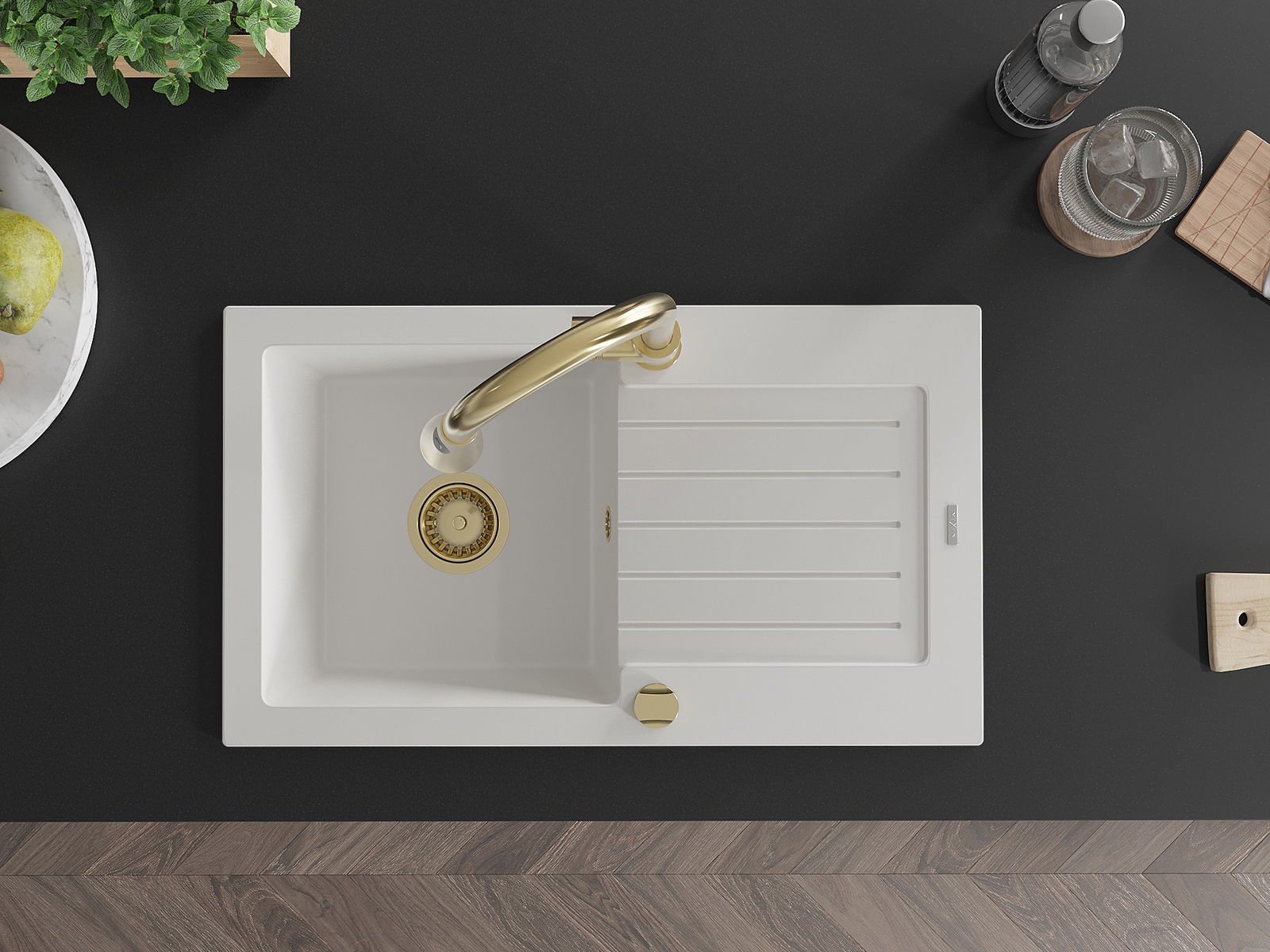 The sink is made of high quality granite. It is an elegant and, above all, practical complement to every kitchen, regardless of its style. High quality and granite durability ensure many years of use.