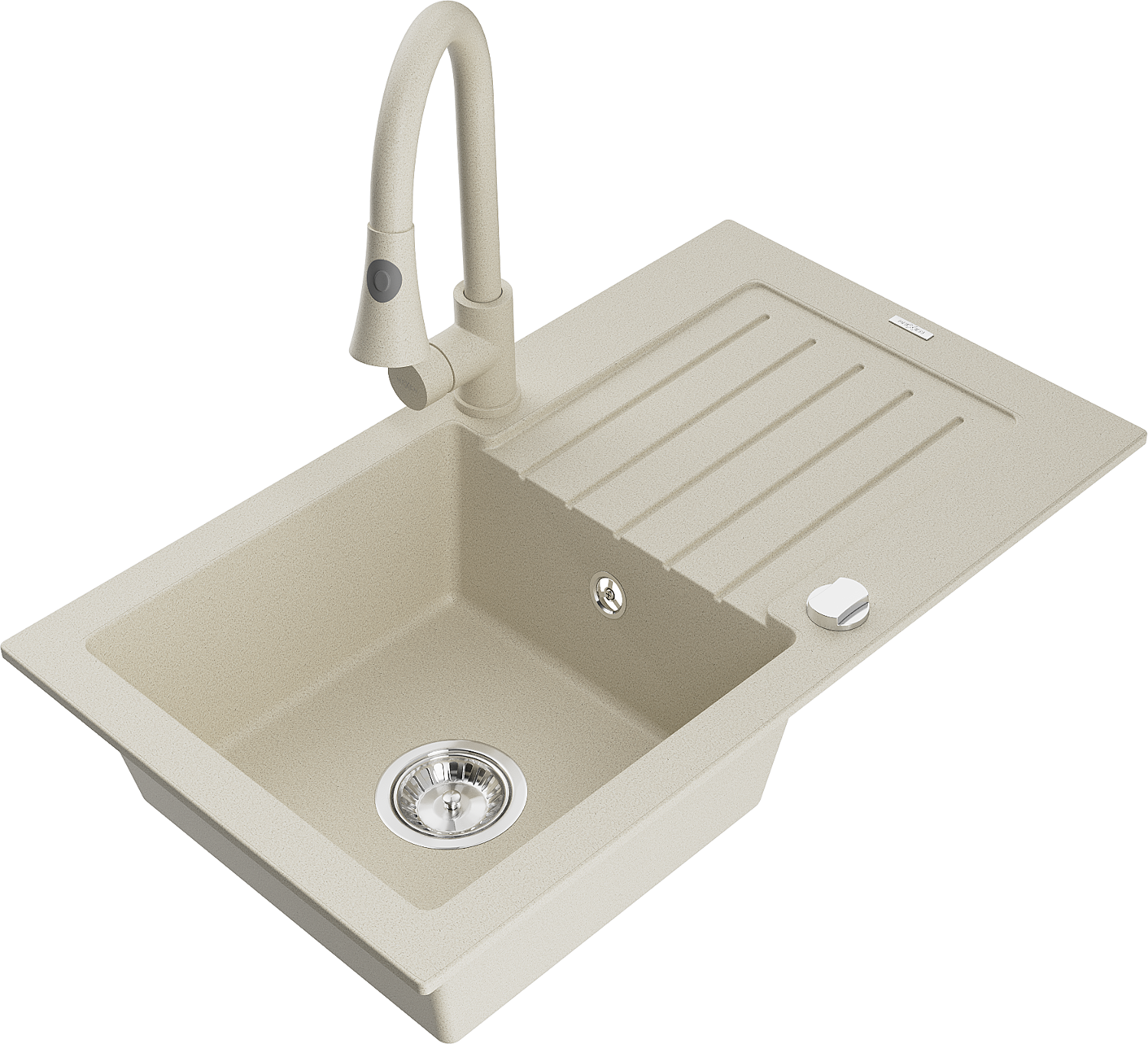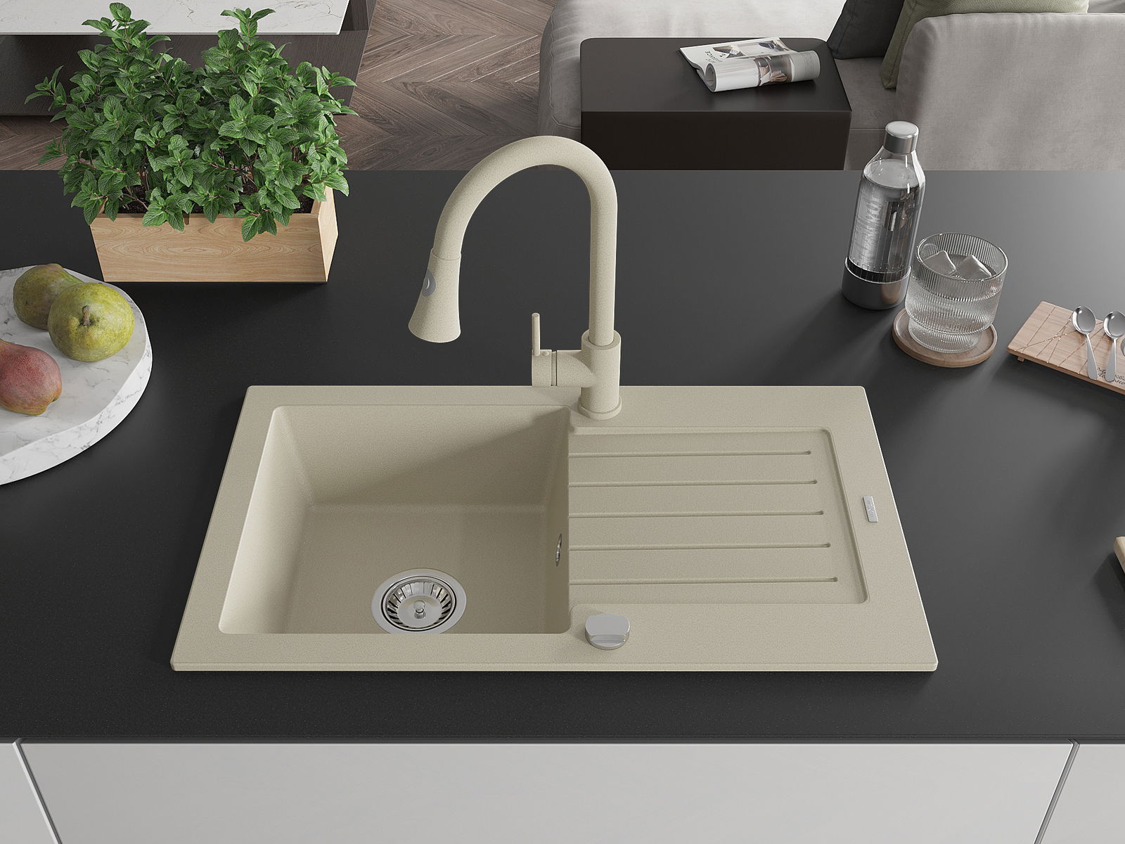 Mexen Pablo 1-bowl granite sink with drainer and Elia kitchen tap, beige - 6510-69-670101-69