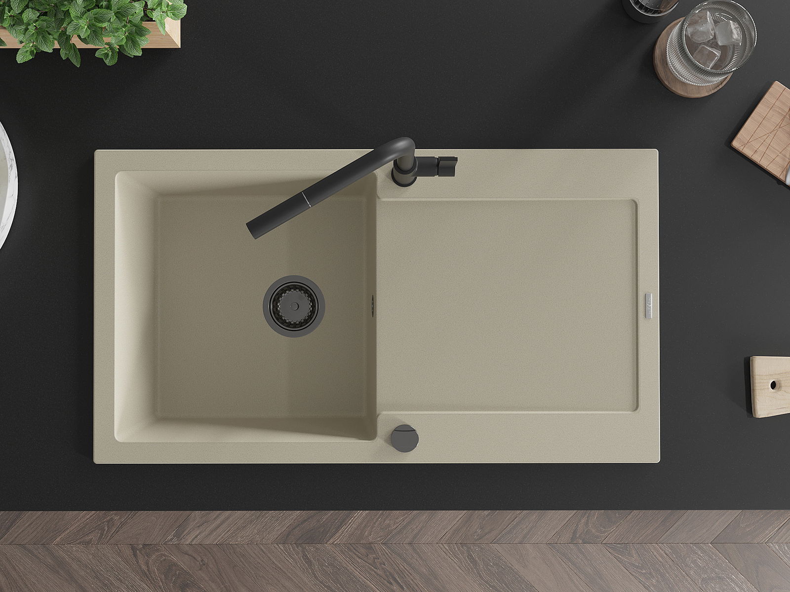 The sink is made of high quality granite. It is an elegant and, above all, practical complement to every kitchen, regardless of its style. High quality and granite durability ensure many years of use.